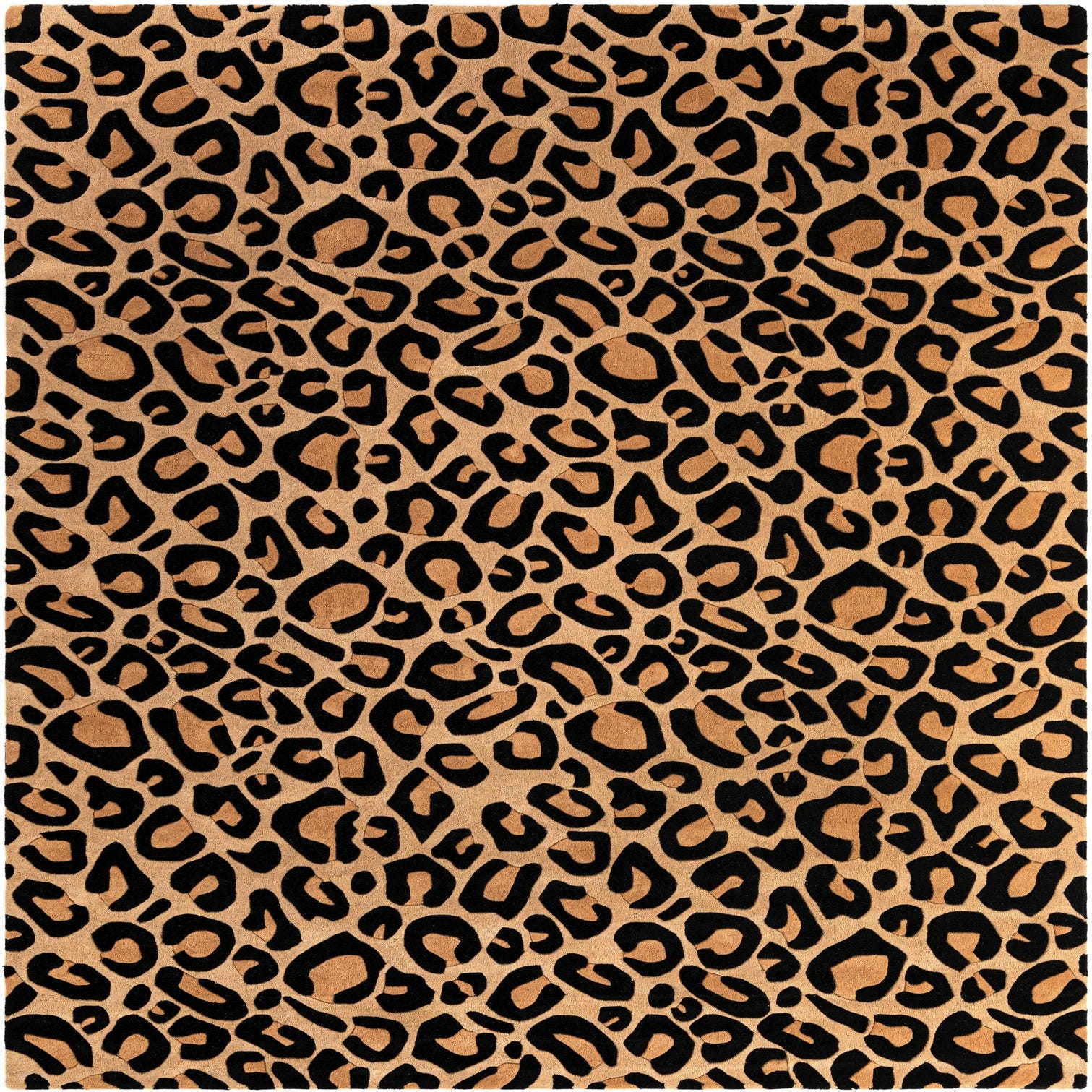 Hand-tufted from 100% wool, this rug presents a dense, cut-pile surface with a pleasantly soft underfoot feel. An all-over leopard motif features bold black rosettes set against a warm beige field, the high-contrast pattern delivering clear definition and visual depth while maintaining an organic, hand-crafted quality. The wool pile gives a subtle sheen and a tactile richness that invites touch.