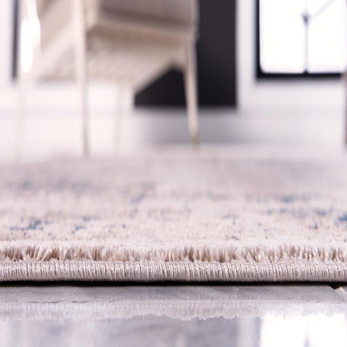 Primary color is Beige and Blue. Colors in this rug include: Beige and Blue, Ivory, Navy Blue.