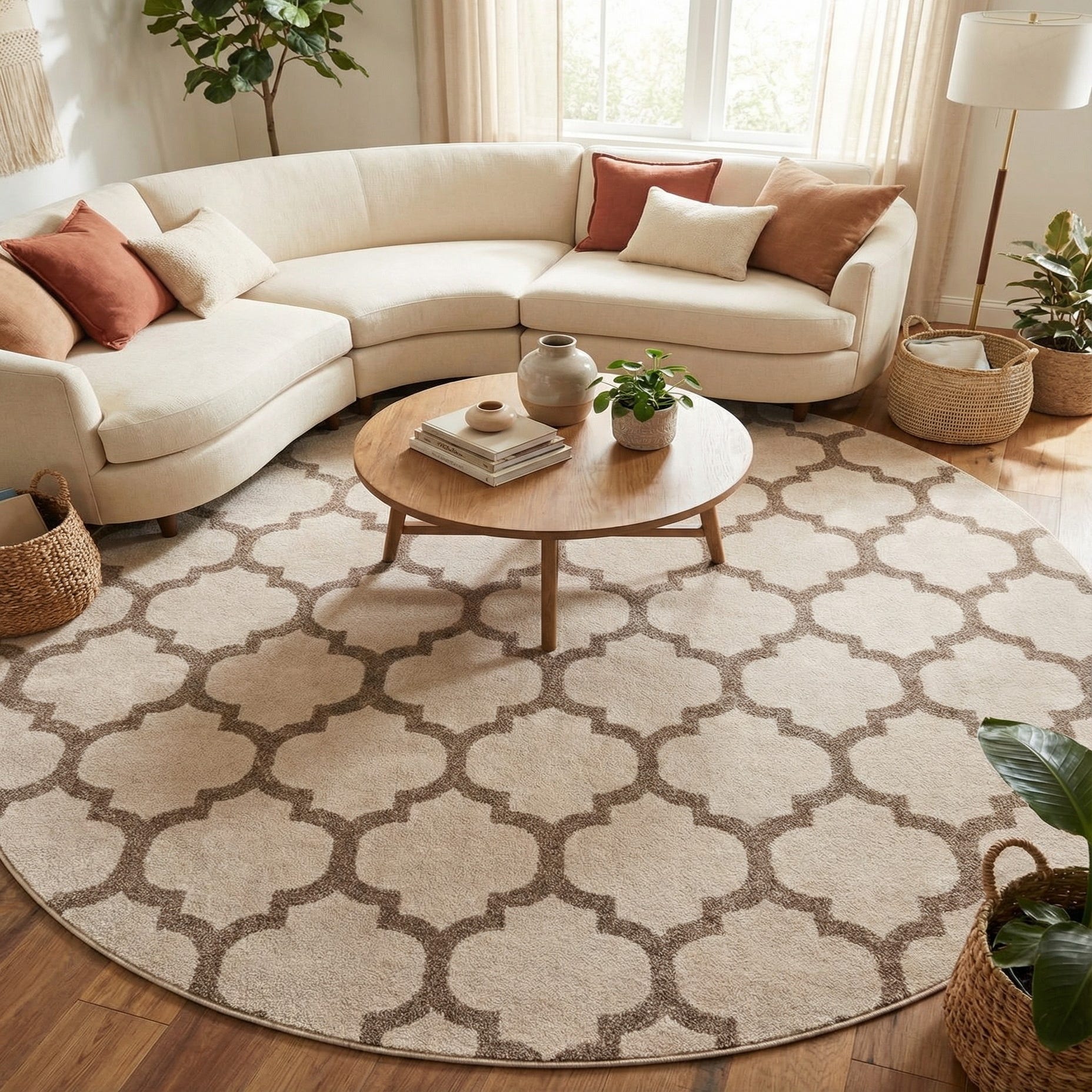 Primary color is Beige and Light Brown. Colors in this rug include: Beige and Light Brown, Beige, Tan.