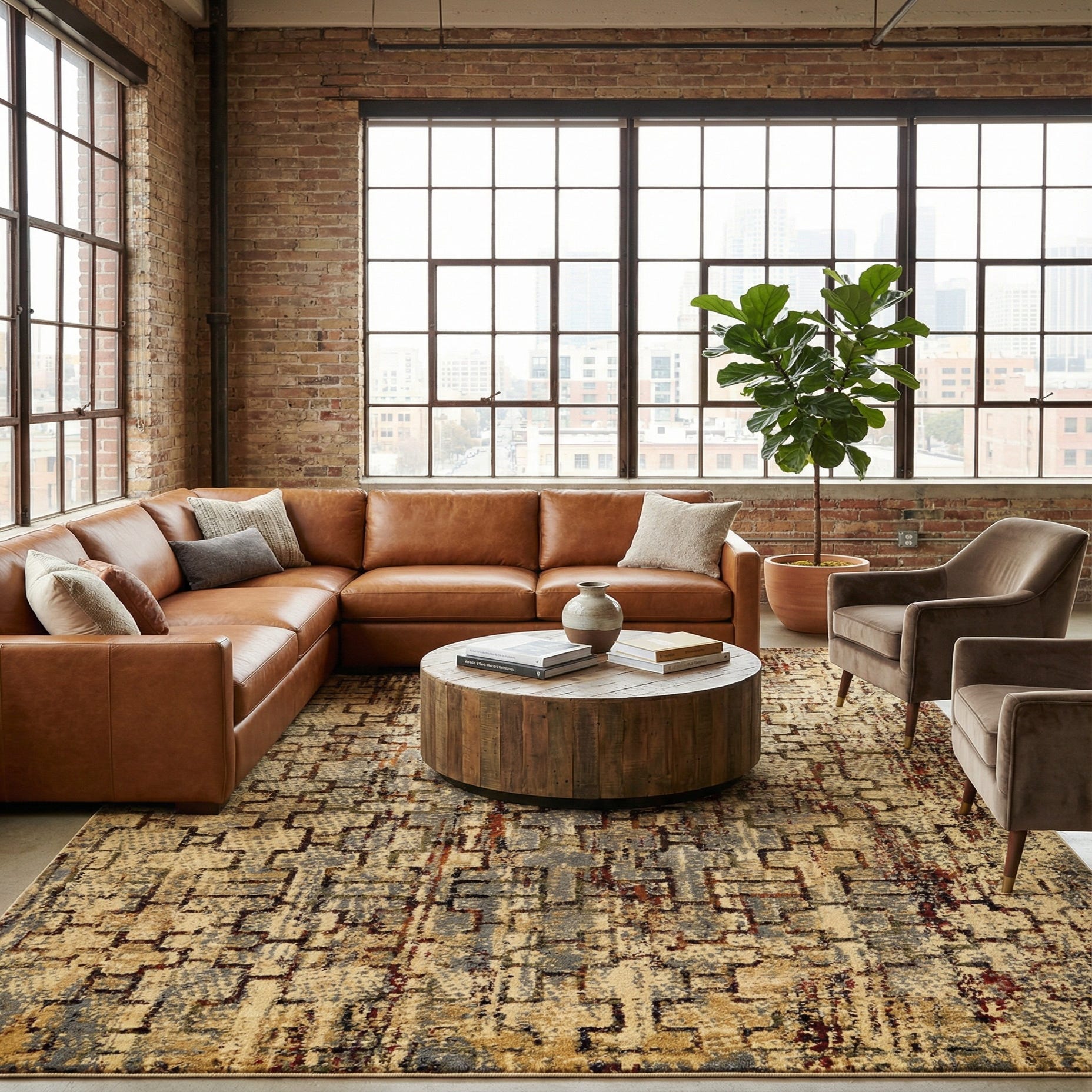 Machine made from 100% polypropylene, this rug offers a consistent texture and color palette that complements a range of interiors. It pairs well with warm wood tones and leather seating for a grounded living room, anchors a dining area beneath a table and chairs, or adds visual interest in a home office or entryway. Use it with neutral upholstery and charcoal or burgundy accents, or layer it under contemporary furniture to balance clean lines with a lived-in, artistic touch.
