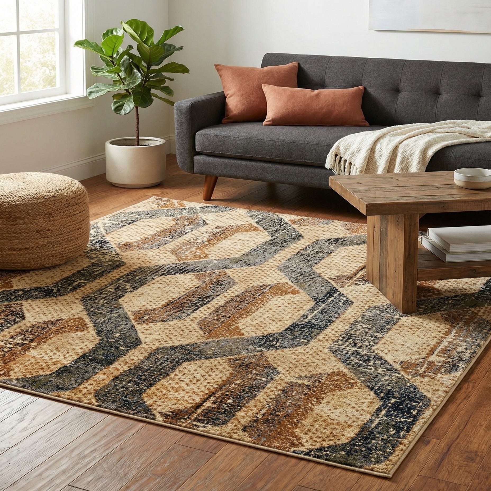 Machine-made from 100% polypropylene, this rug has a low, tightly woven pile with a subtle, slightly nubby hand that feels comfortable underfoot. Its scale and pattern make it well suited to defining a small seating area, grounding a home office, or bringing interest to an entry or hallway. Pair it with mid-century modern furnishings for a vintage-modern look, with warm wood tones and leather accents for a cozy layered feel, or use it to add pattern and warmth to a neutral contemporary space.