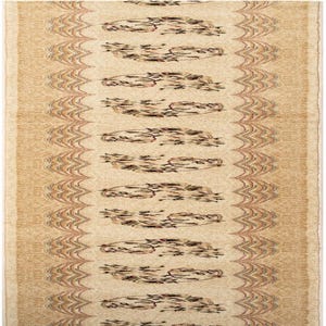 Primary color is Beige. Colors in this rug include: Beige, Black, Burgundy, Green, Ivory, Tan, Salmon.