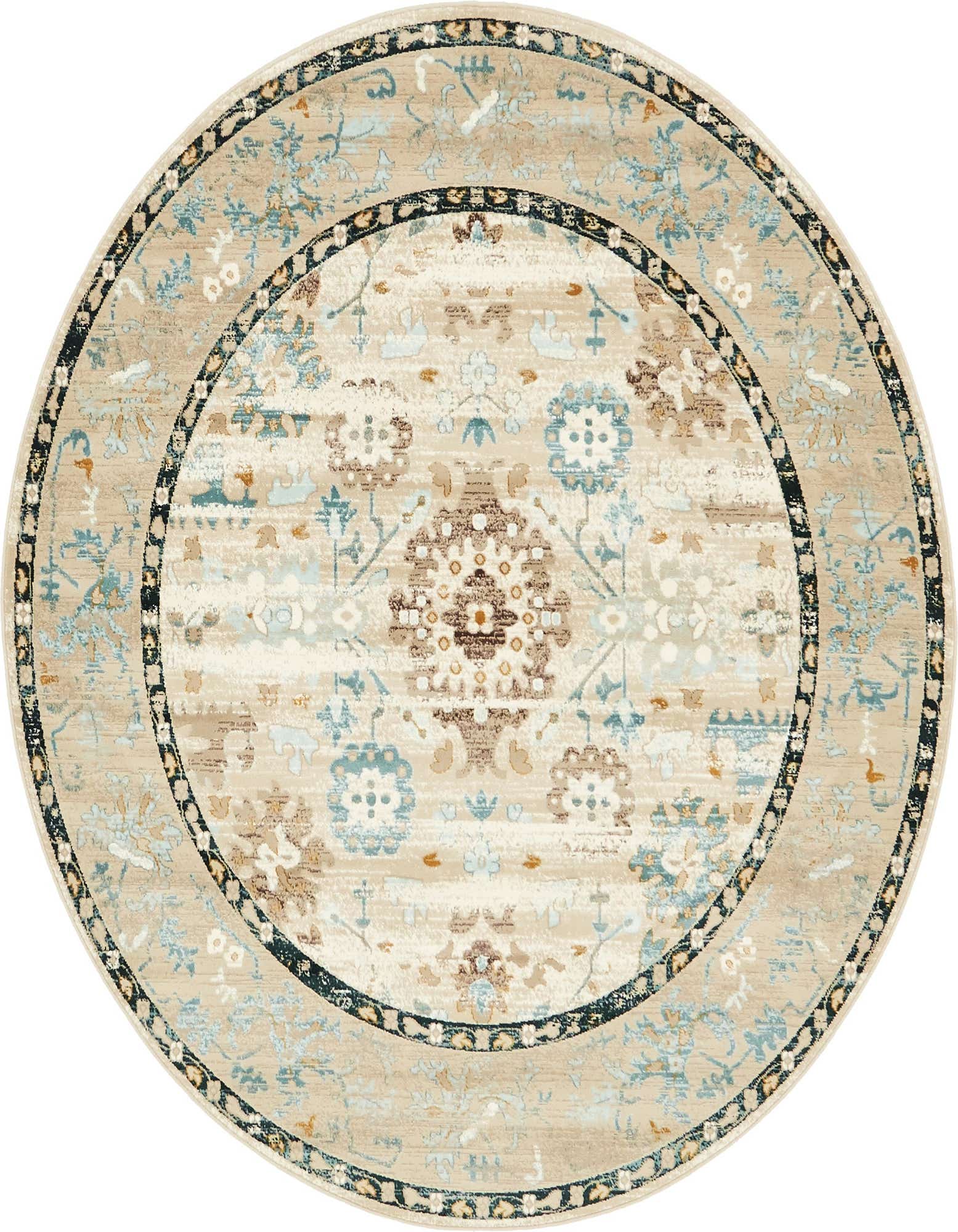 Primary color is Beige. Colors in this rug include: Beige, Blue, Brown, Cream, Orange, Light Blue.