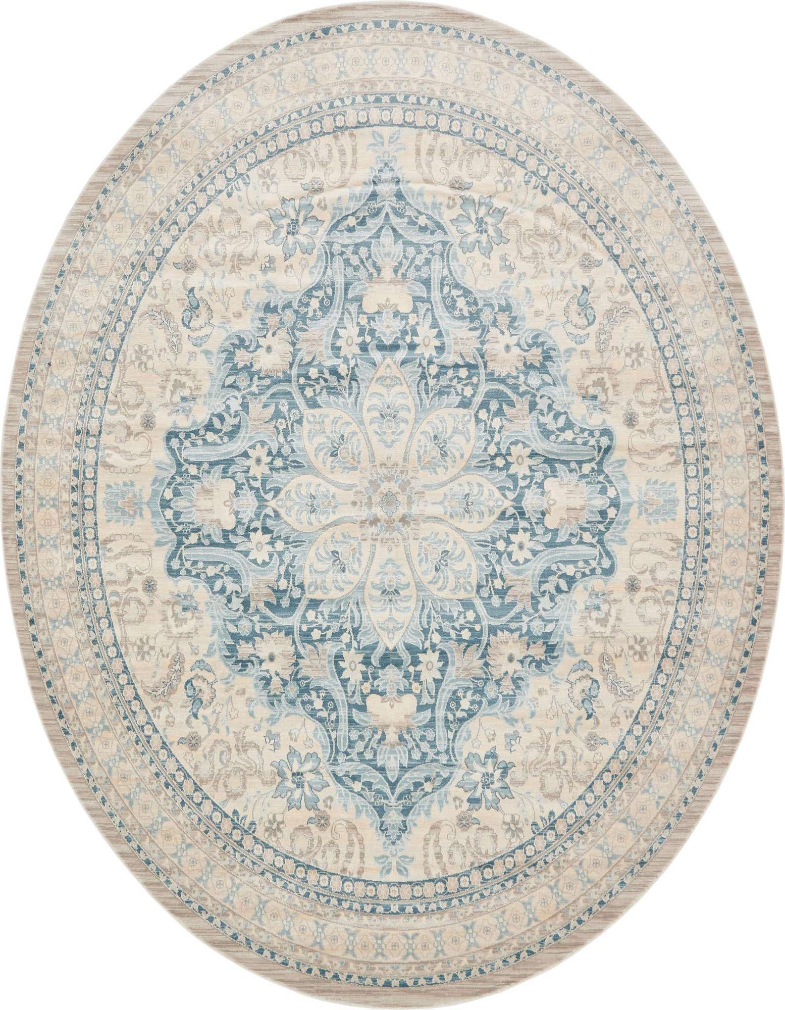 Primary color is Beige. Colors in this rug include: Beige, Blue, Brown, Navy Blue.