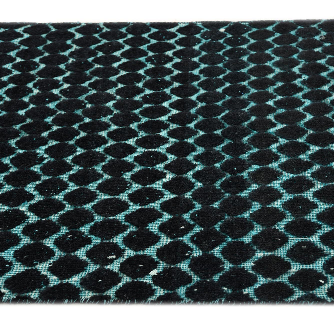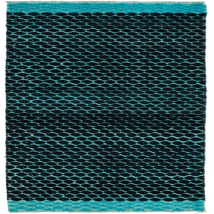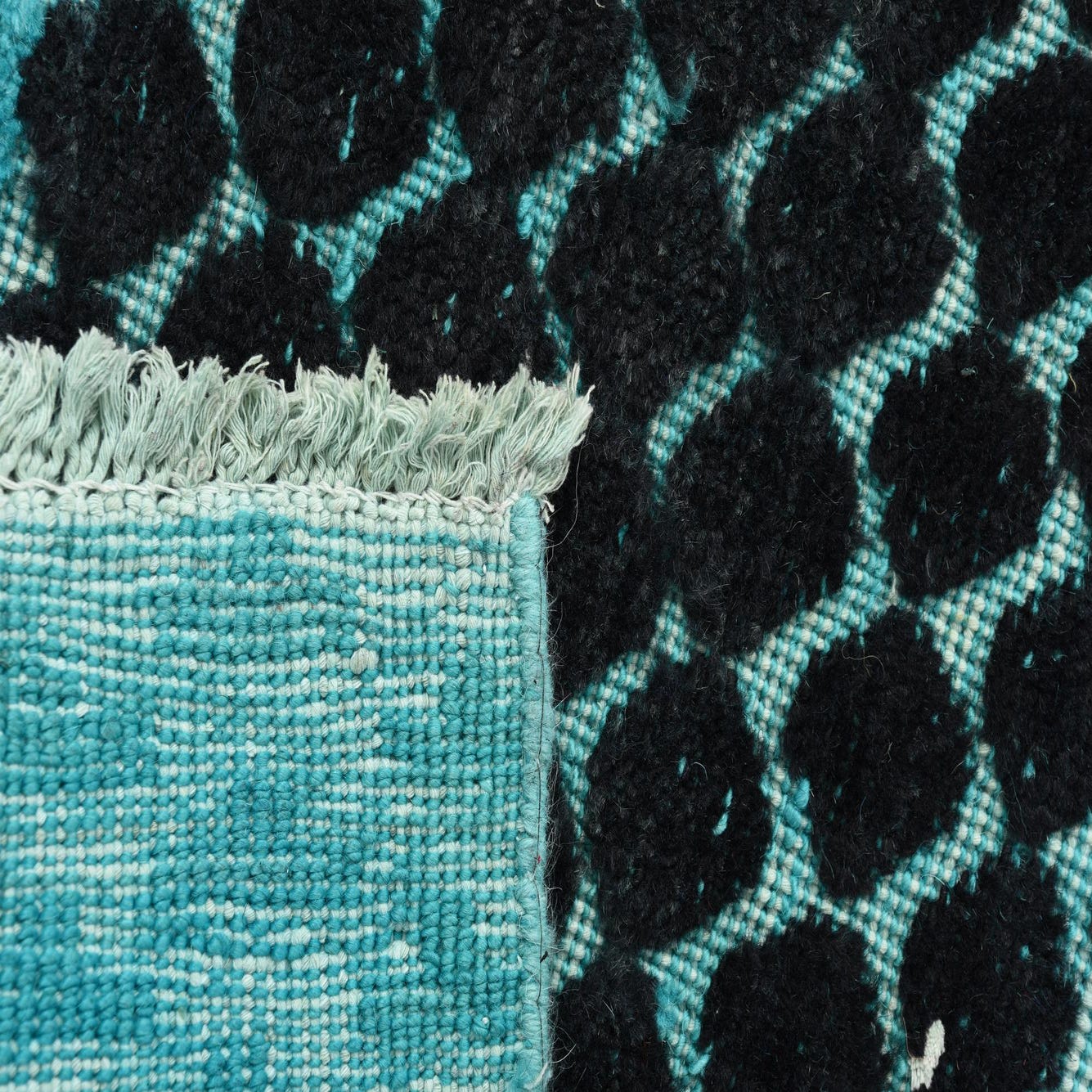 Primary color is Black. Colors in this rug include: Black, Turquoise.