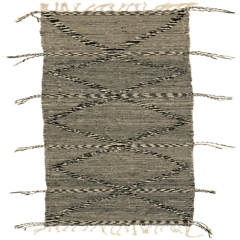 Primary color is Black. Colors in this rug include: Black, Ivory.
