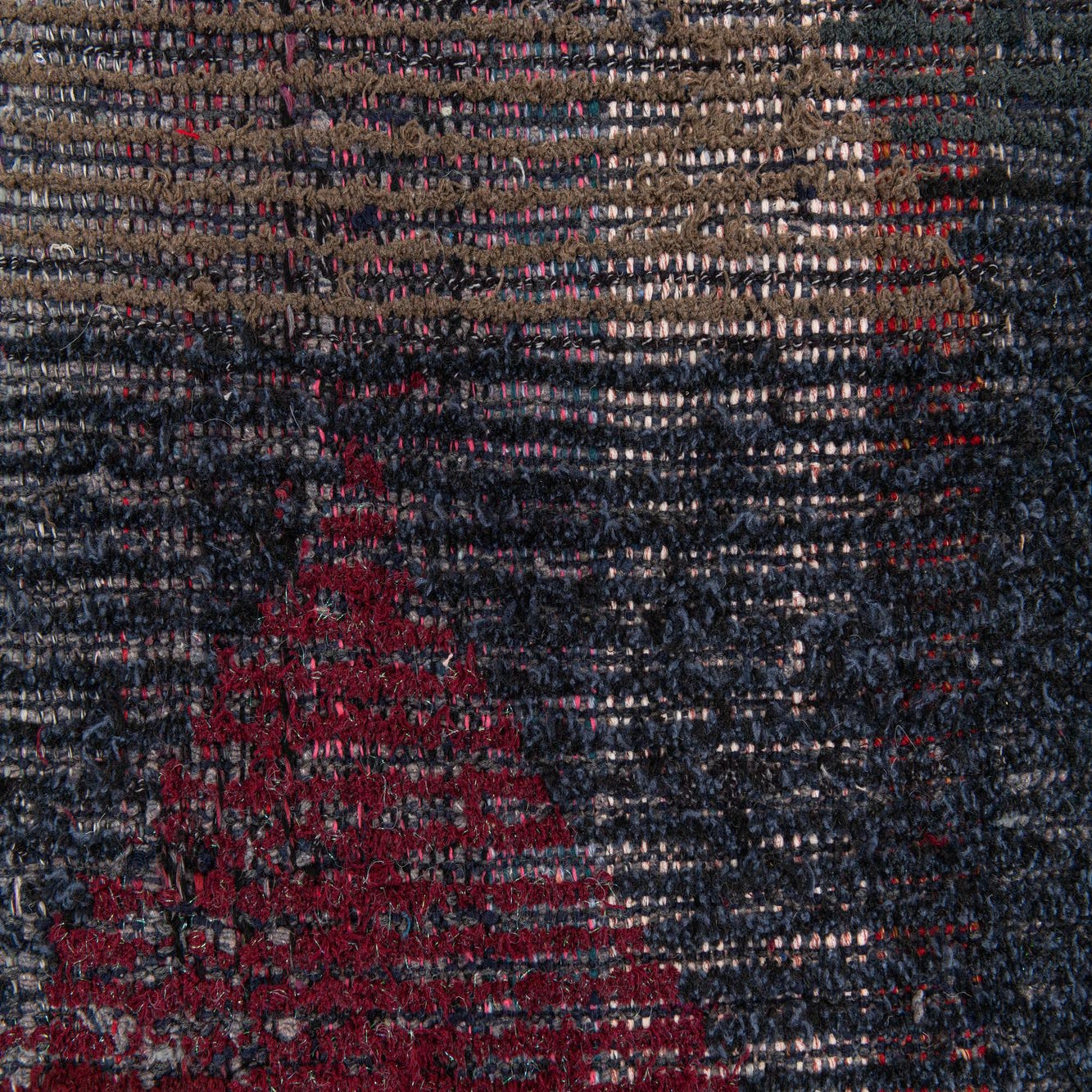 Primary color is Black. Colors in this rug include: Black, Blue, Brown, Burgundy, Pink, Gray.