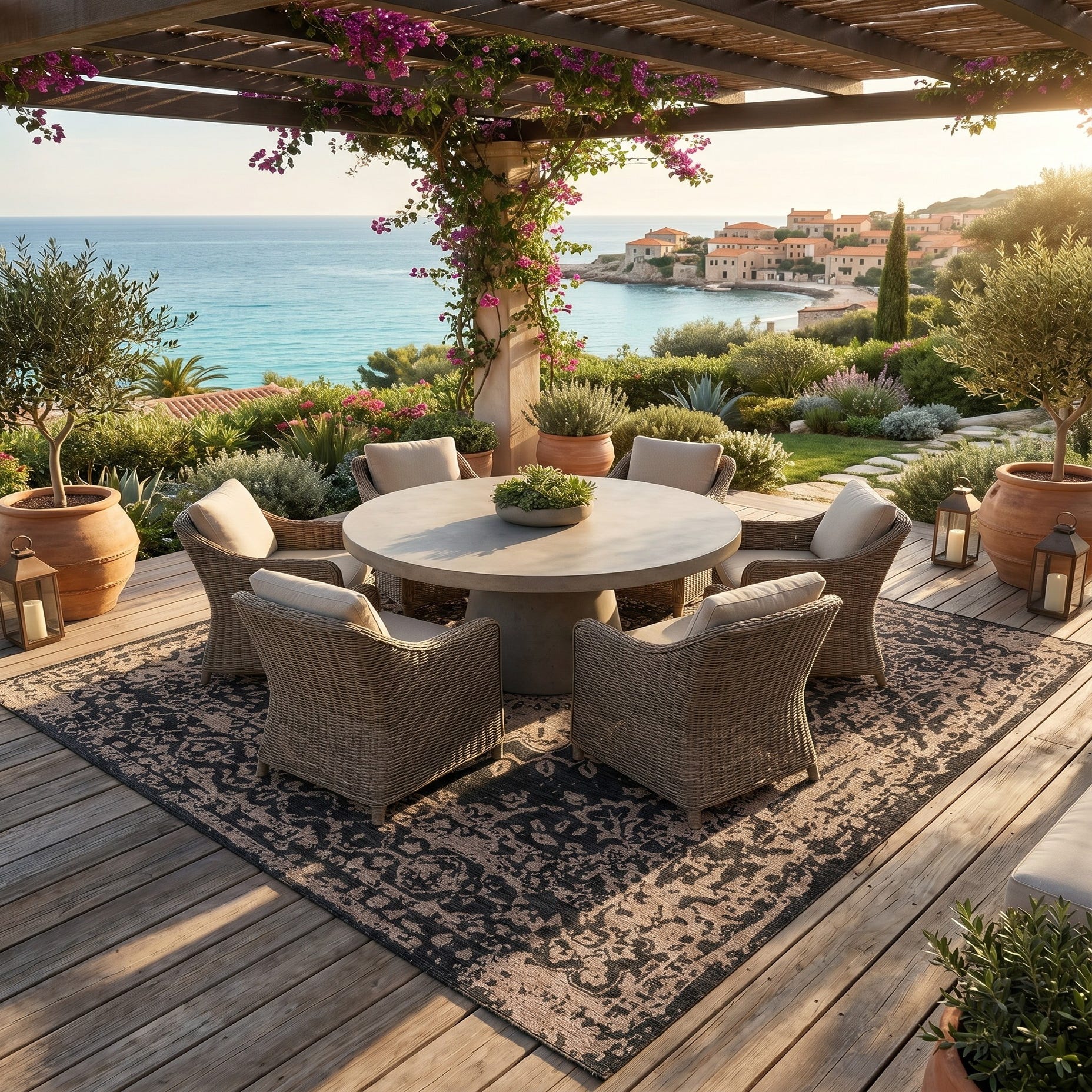 10' x 10' Easy-Clean Traditional Indoor / Outdoor Square Rug