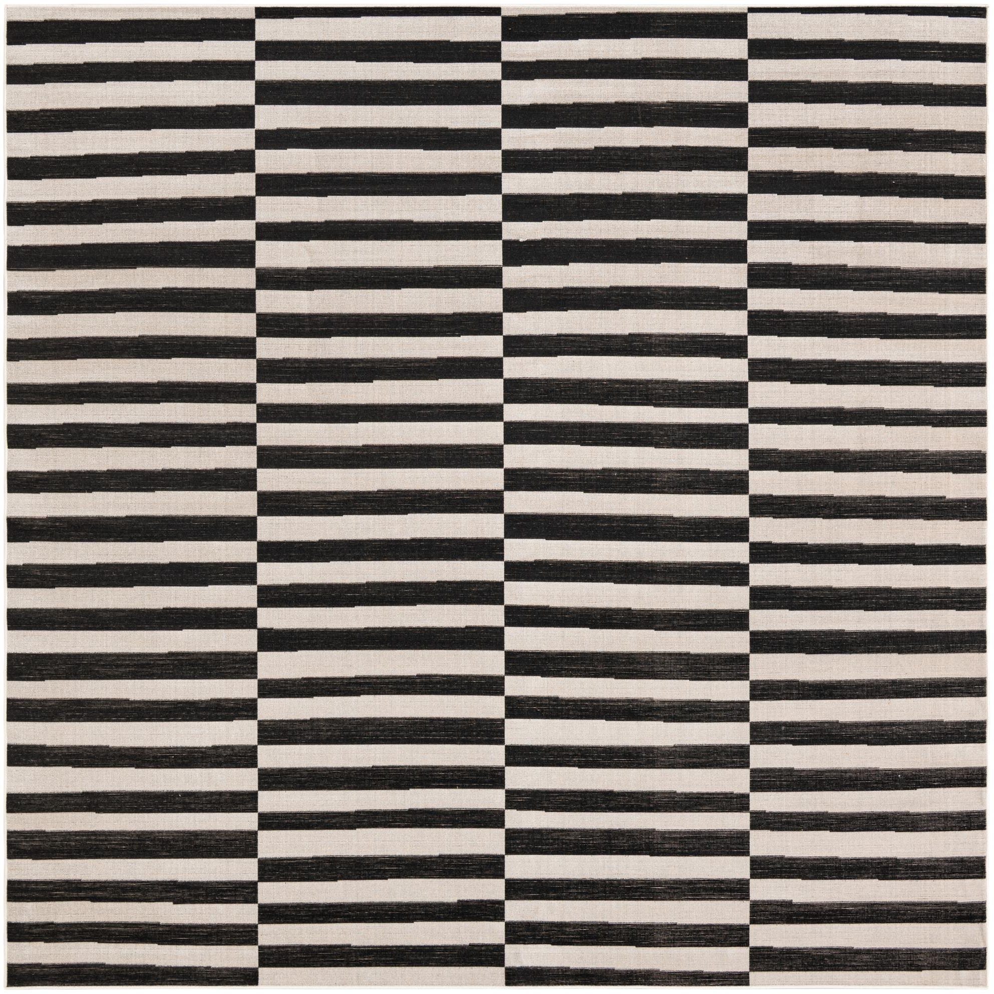 Primary color is Black. Colors in this rug include: Black, Ivory.