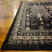 Primary color is Black. Colors in this rug include: Black, Cream, Gray.