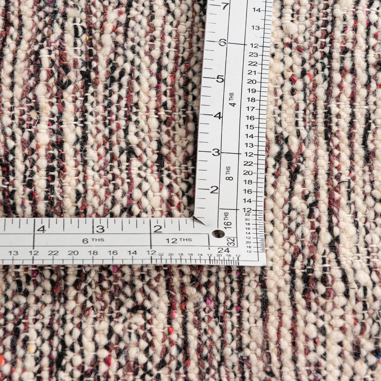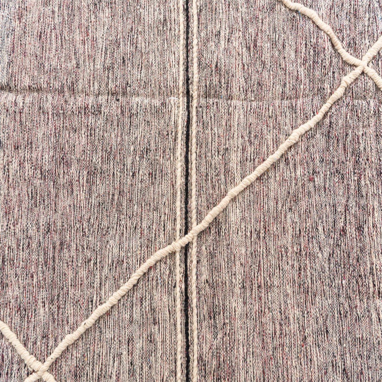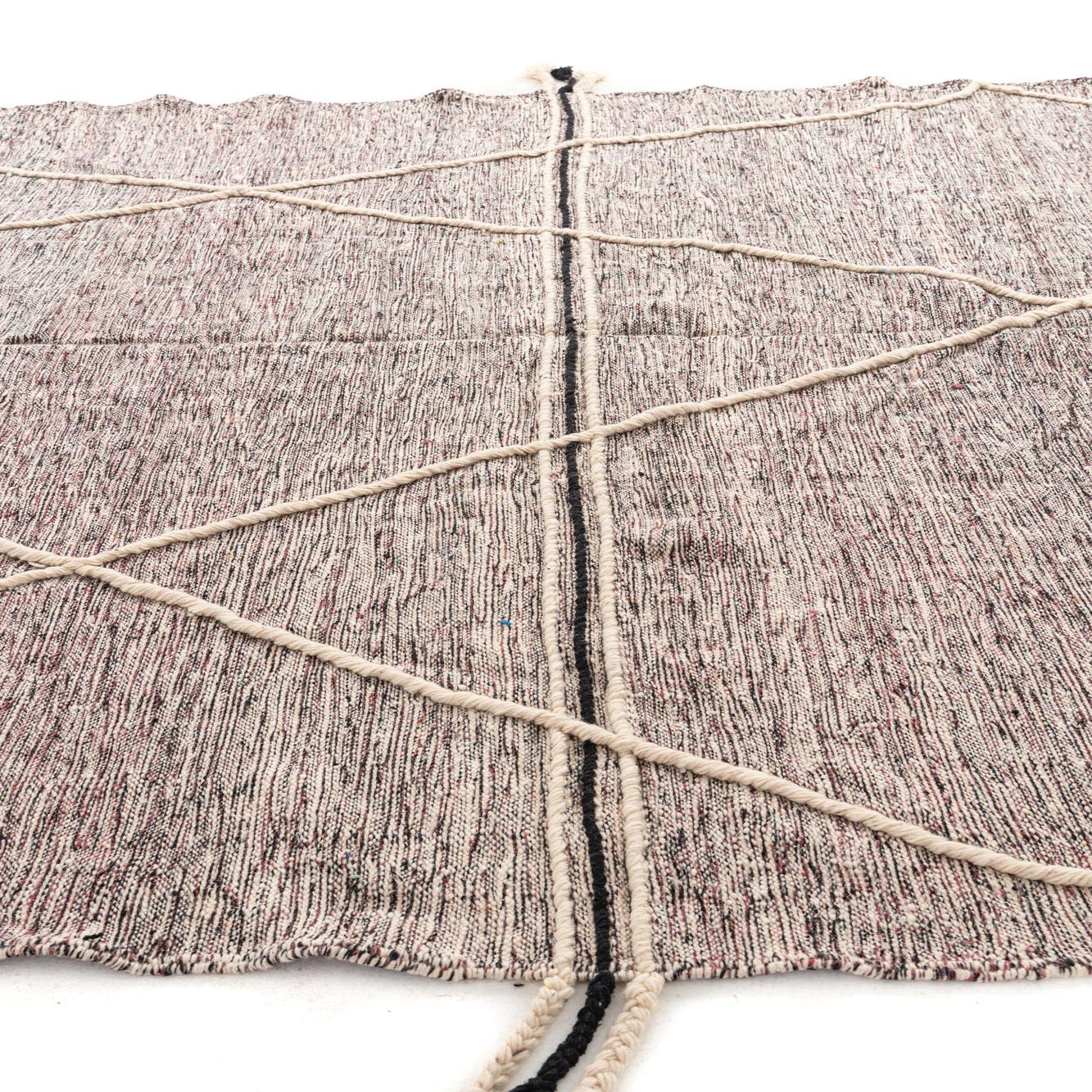 Primary color is Black. Colors in this rug include: Black, Violet, Ivory.