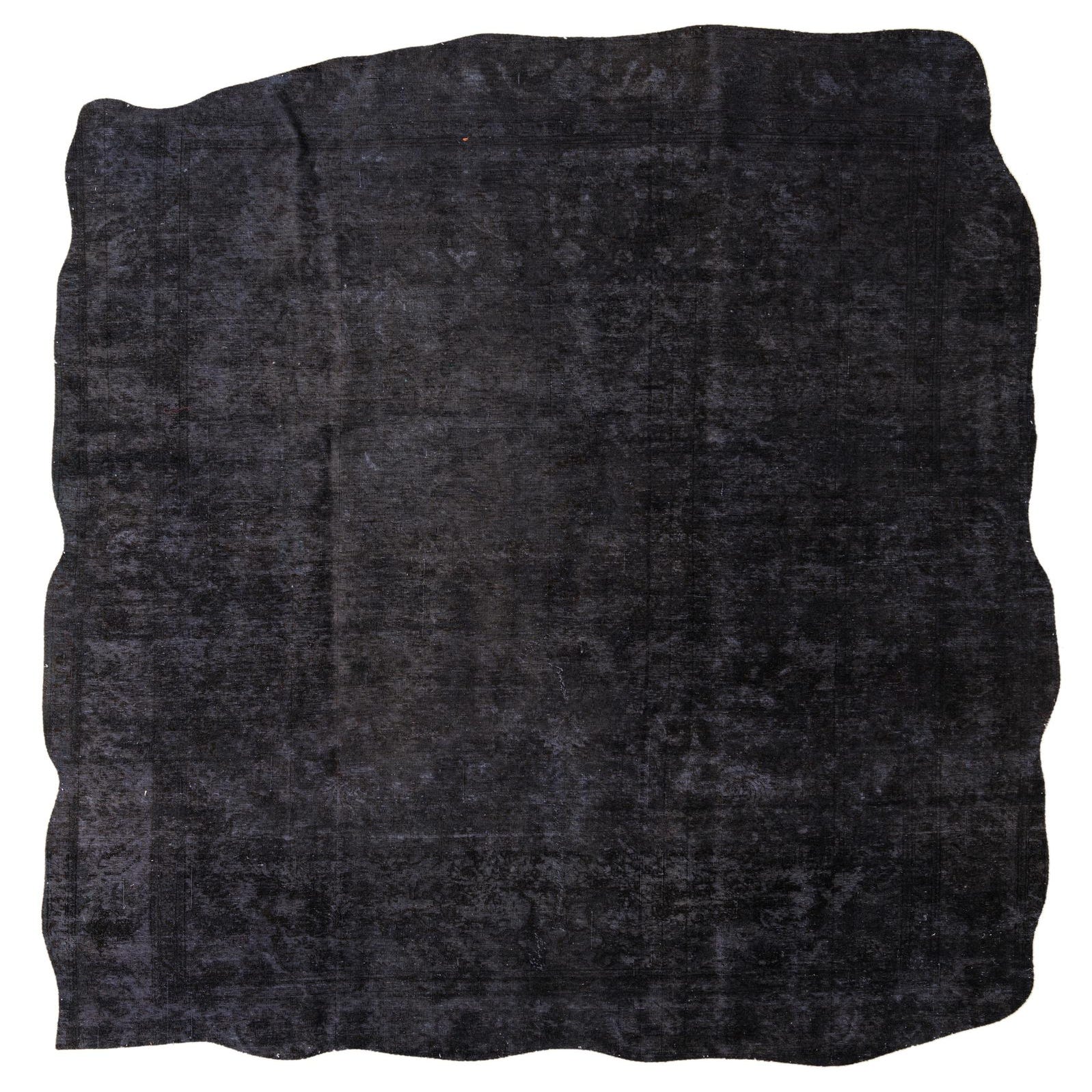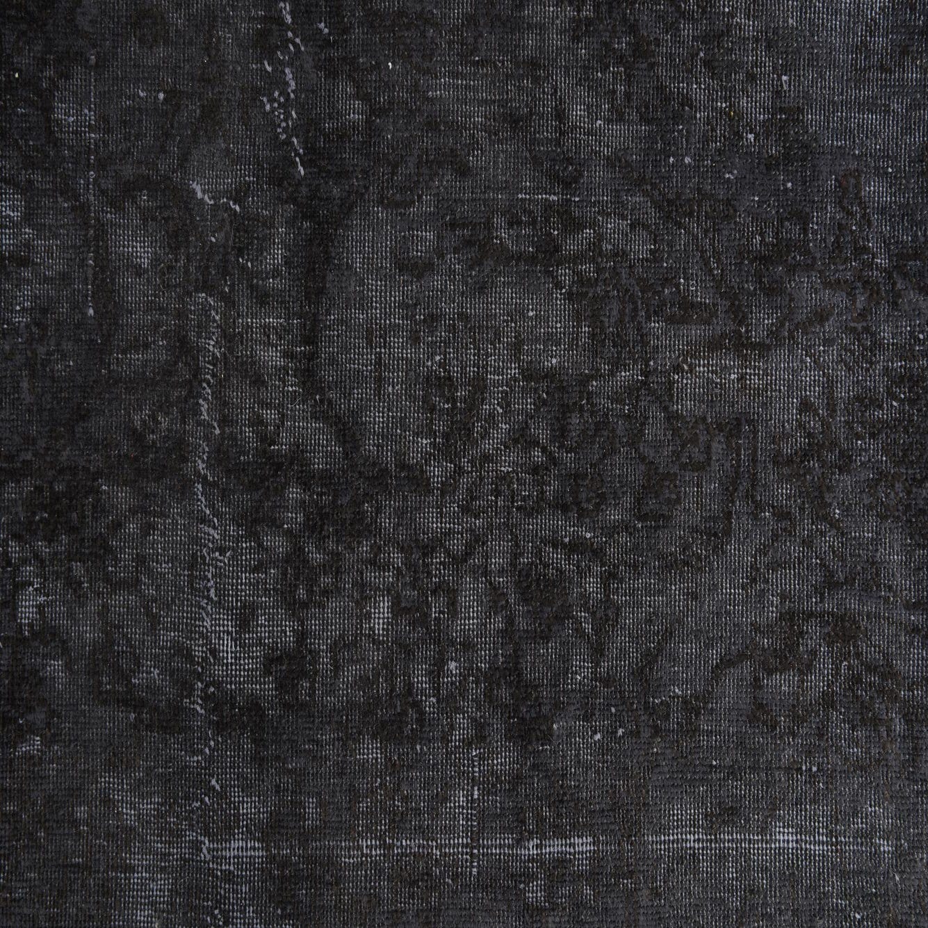 A 10x13 rectangular black area rug with a subtle, distressed Persian pattern, perfect for a living room.