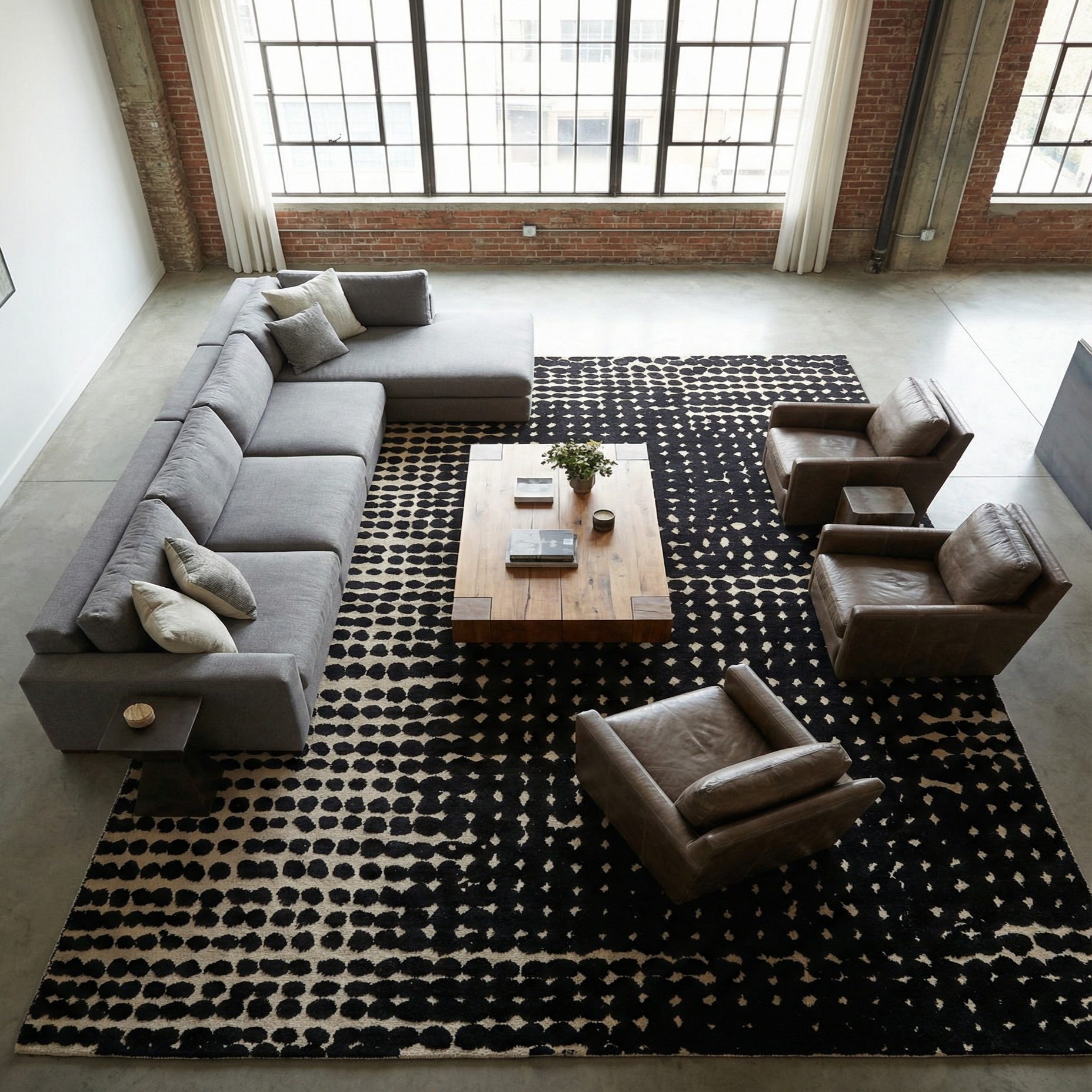 Primary color is Black. Colors in this rug include: Black, Ivory.