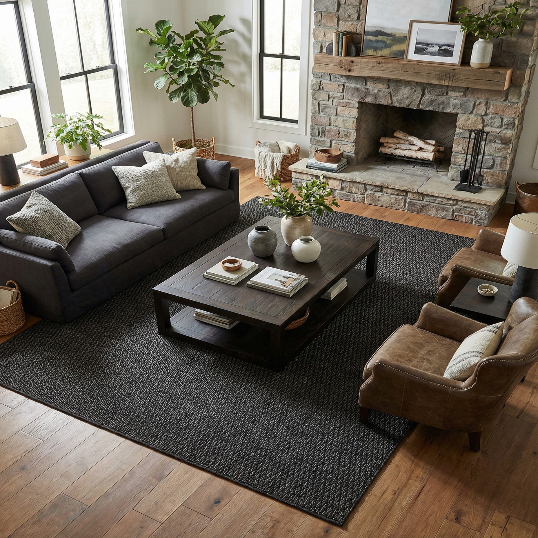 This piece works well in modern and transitional interiors that favor contrast and clean lines. Use it to anchor a monochrome living room, beneath a leather sofa in an industrial loft, or layered under a dining table to balance warm wood tones and metal accents. It also pairs nicely with ivory linens or natural wood furniture when you want a strong, grounding backdrop that stays visually calm.