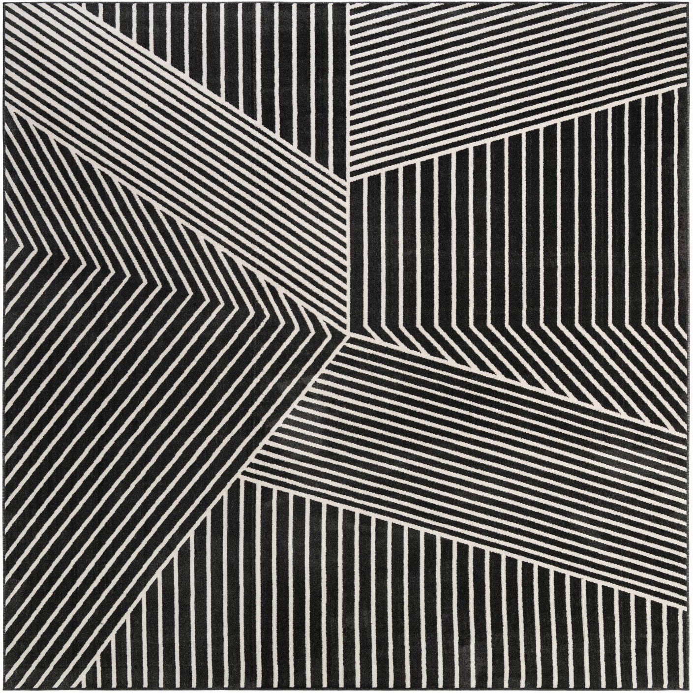 Primary color is Black. Colors in this rug include: Black, Ivory.