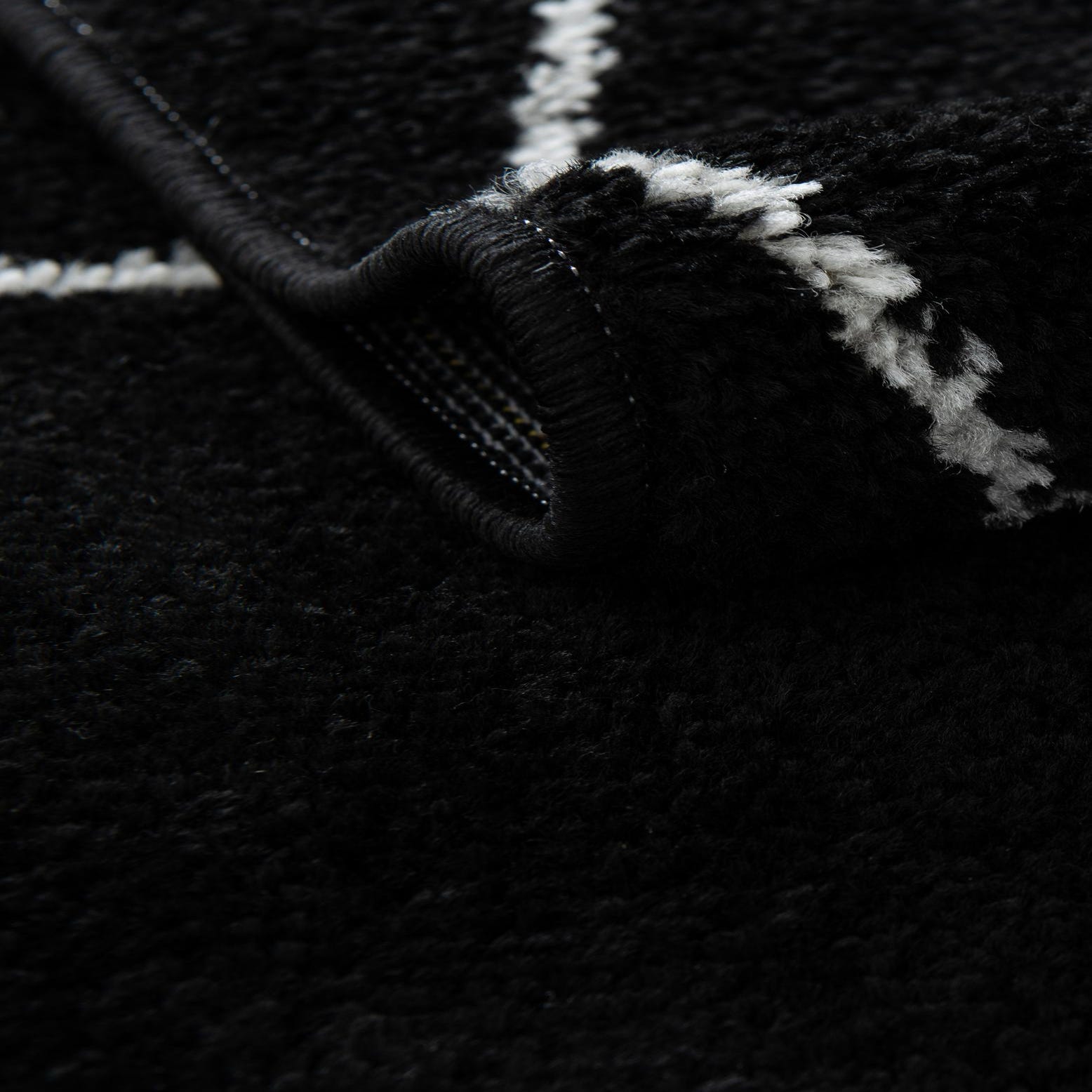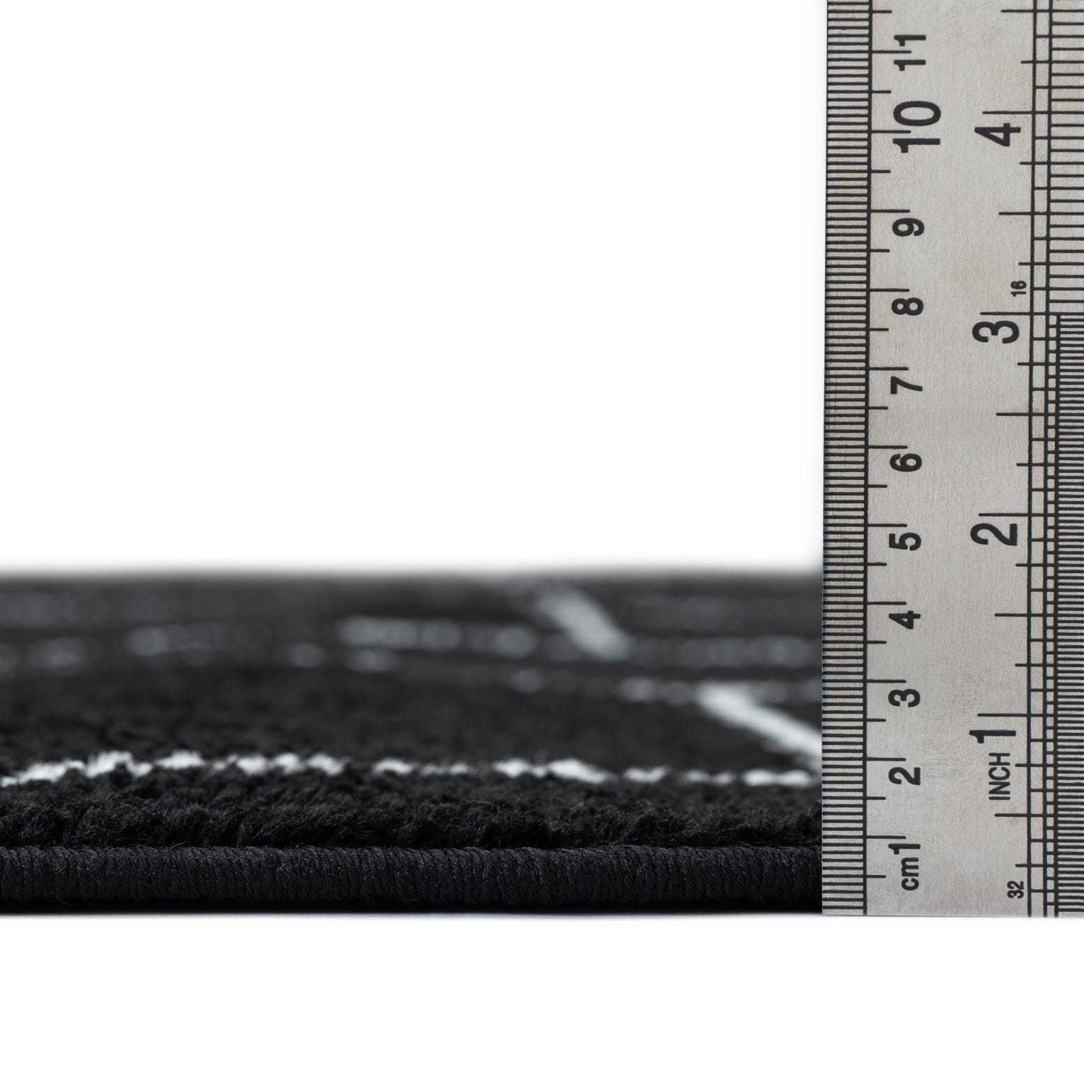 Primary color is Black. Colors in this rug include: Black, Ivory.