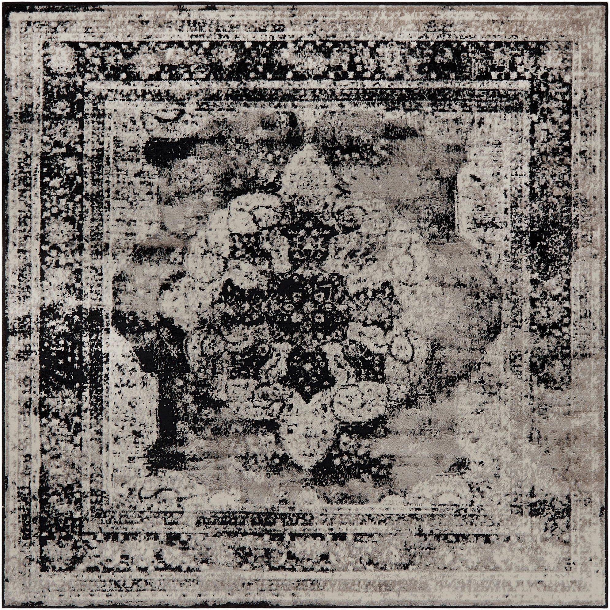 Primary color is Black. Colors in this rug include: Black, Gray, Ivory.