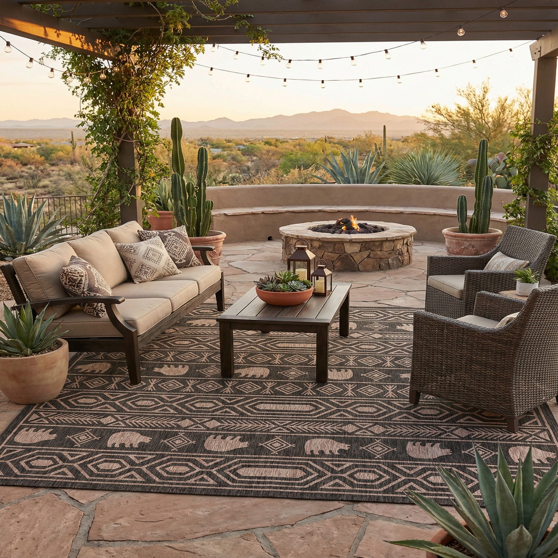 12' x 12' Washable Southwestern Indoor / Outdoor Square Rug