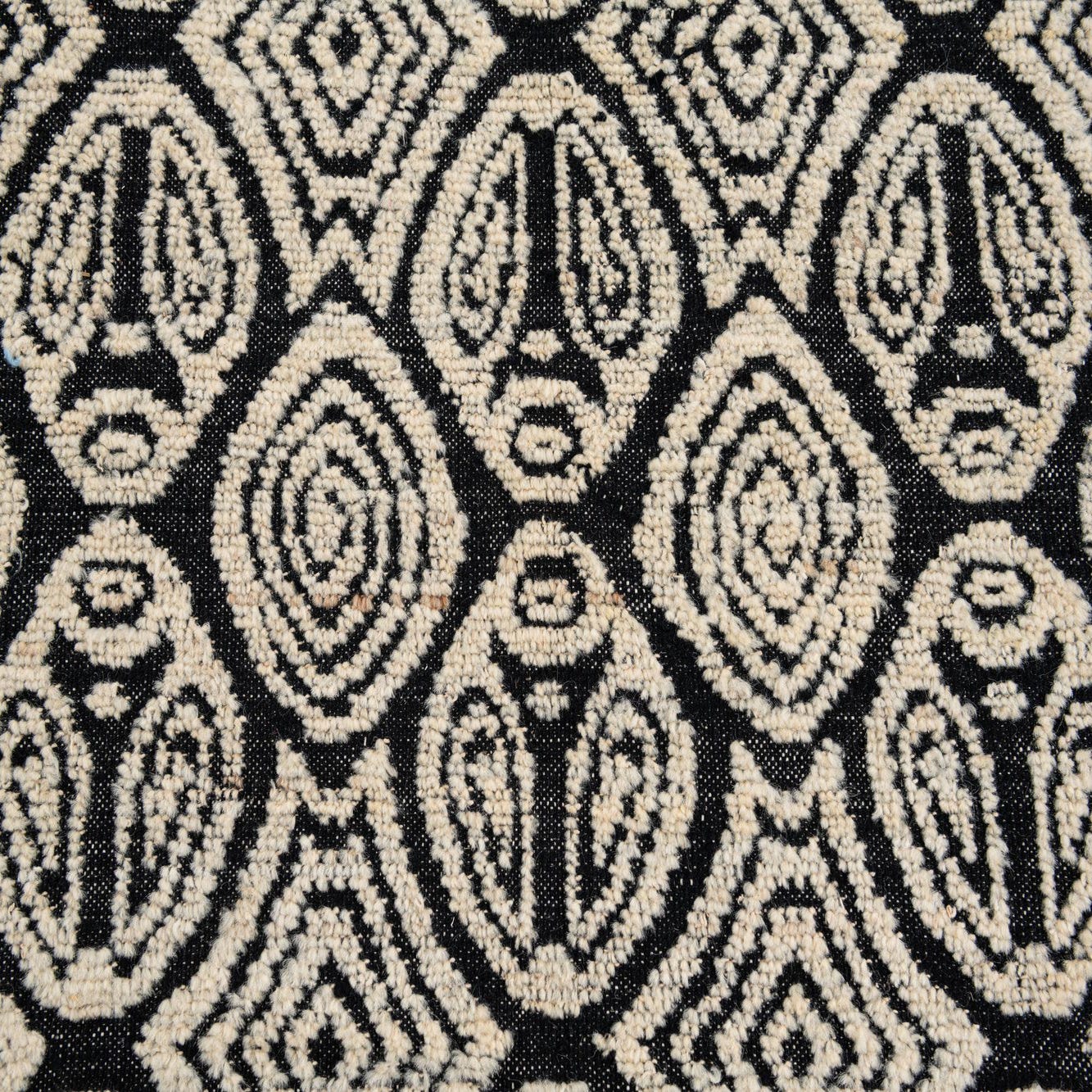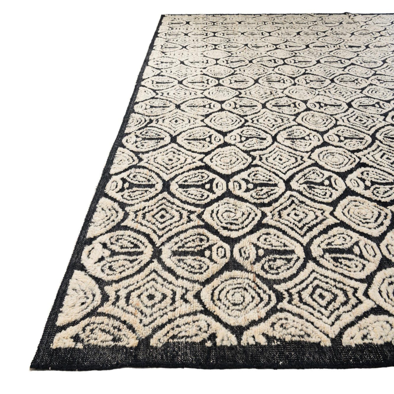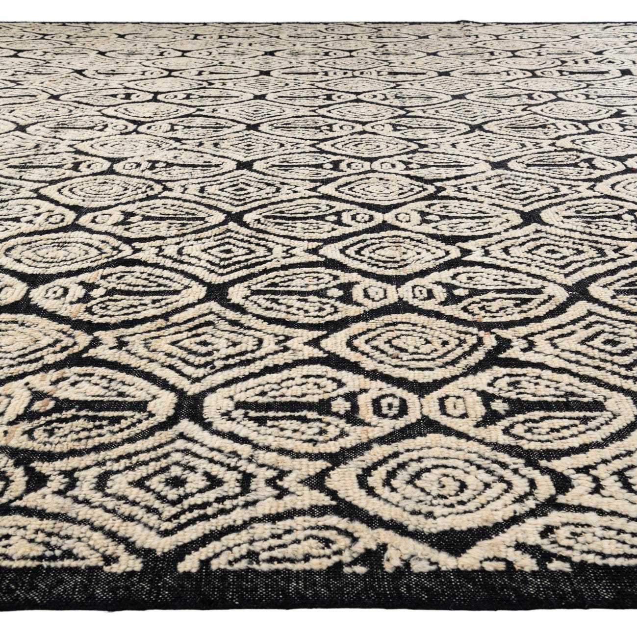 A 12x15 rectangular Darya rug featuring a modern black and off-white geometric pattern, handmade from wool.
