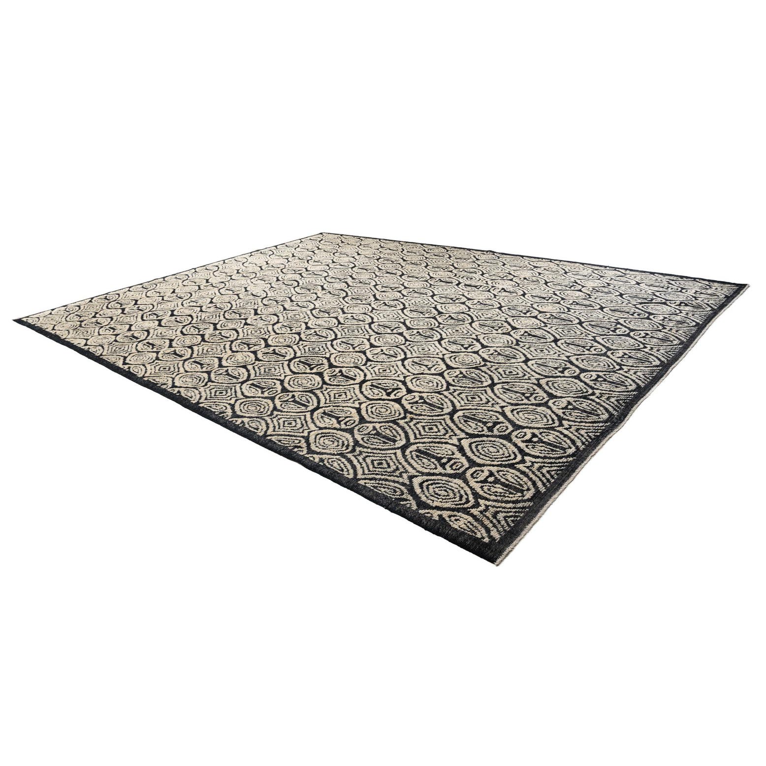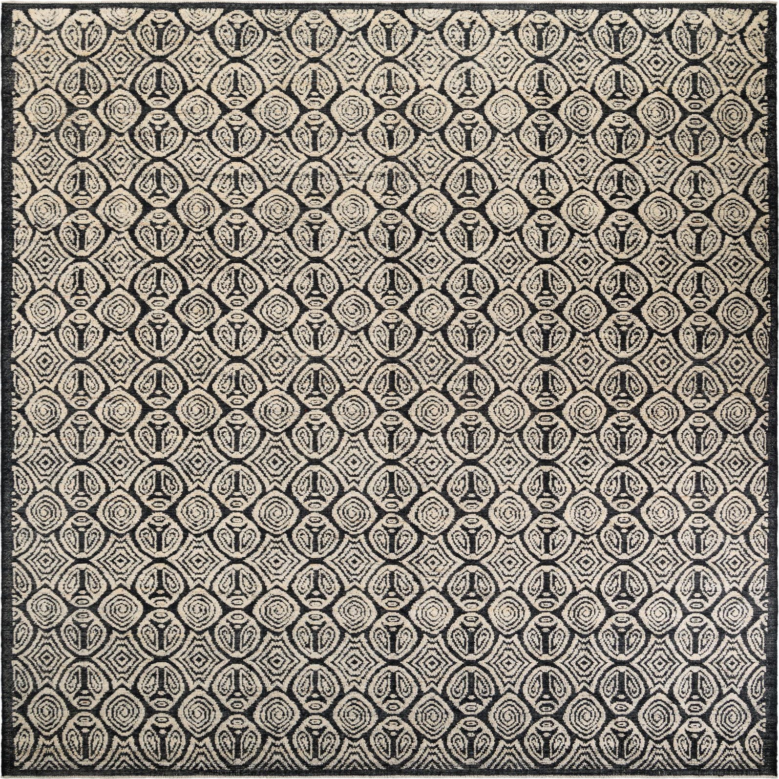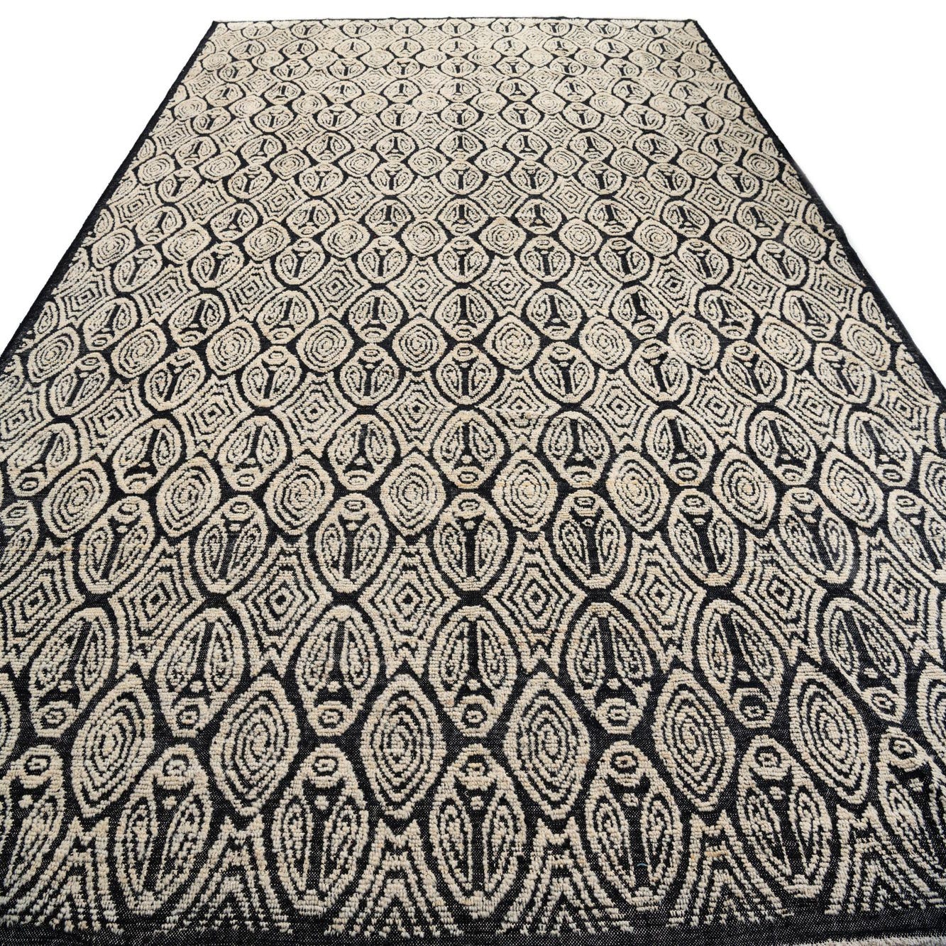 A 12x15 rectangular Darya rug featuring a modern black and off-white geometric pattern, handmade from wool.