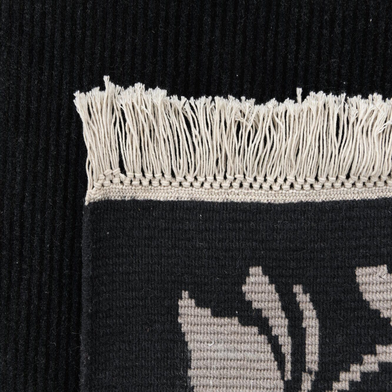 Primary color is Black. Colors in this rug include: Black, Gray, Silver.