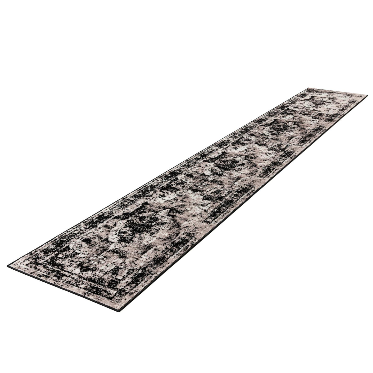 The Monte Carlo collection presents a sophisticated 13 ft runner rug, masterfully machine woven from 100% polypropylene, ensuring durability and a shed-free experience. This piece showcases a dynamic abstract pattern, dominated by a black background with thoughtful distributions of gray and ivory that offer visual depth and texture. The design evokes the appearance of marbled stone or a natural terrain, providing an artful touch to your floor space.