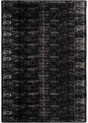 Primary color is Black. Colors in this rug include: Black, Gray, Ivory.