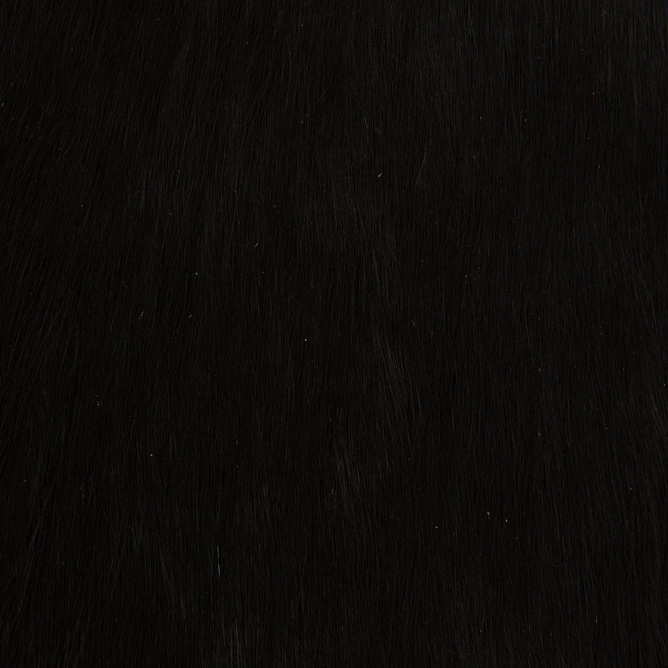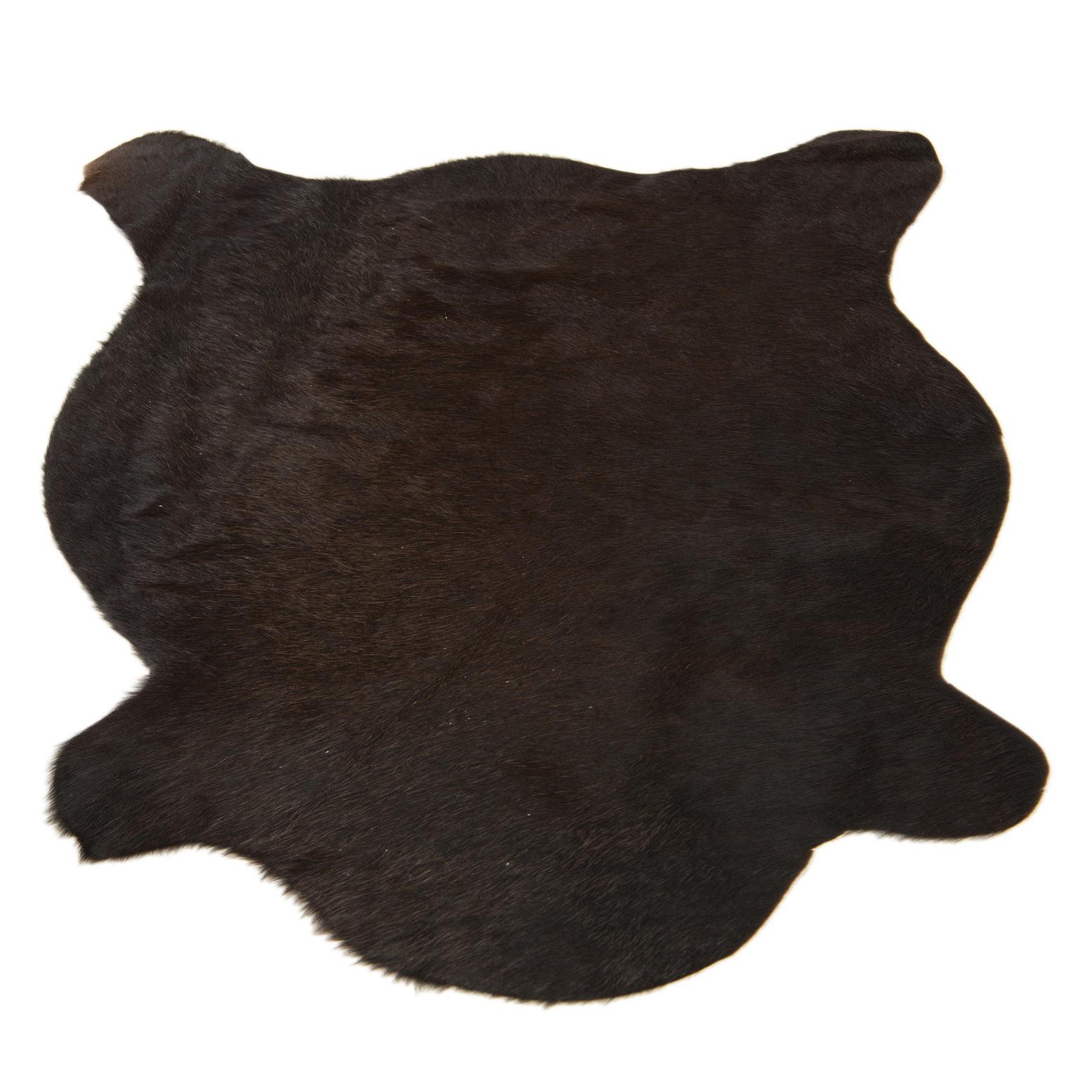 A 2x3 black rectangular modern cowhide rug with a flat, textured pile, suitable for a kitchen or entryway.