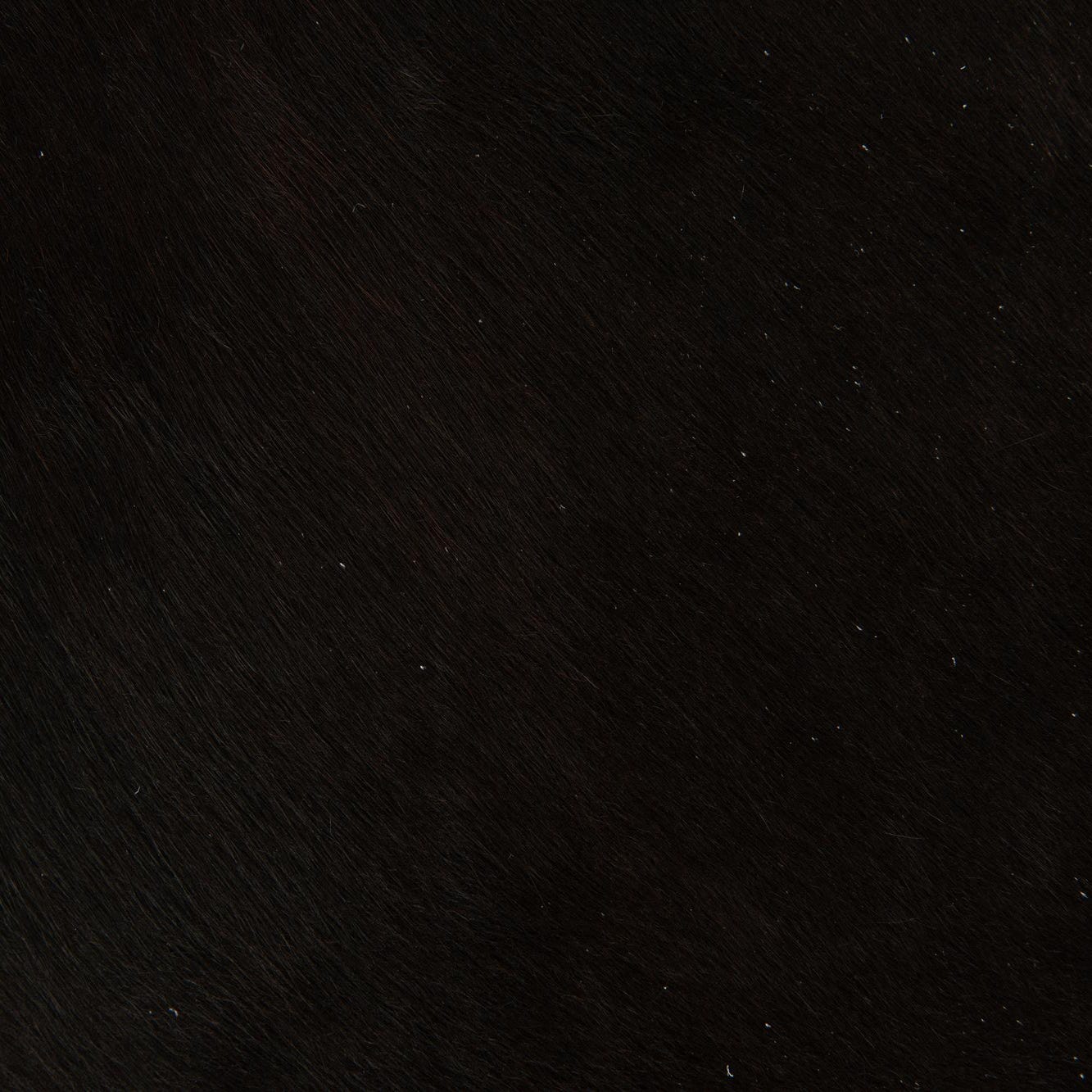 A dense, hair-on-hide surface in deep black creates a clean, organic composition accented by subtle brown highlights that catch light across the hair. The rug retains the natural, irregular outline of the hide, giving it an honest, sculptural presence rather than a printed motif. Hand made of cowhide and leather, the piece has a smooth, tactile nap with a low, tactile pile that responds to touch and shows gentle variation in tone and texture.