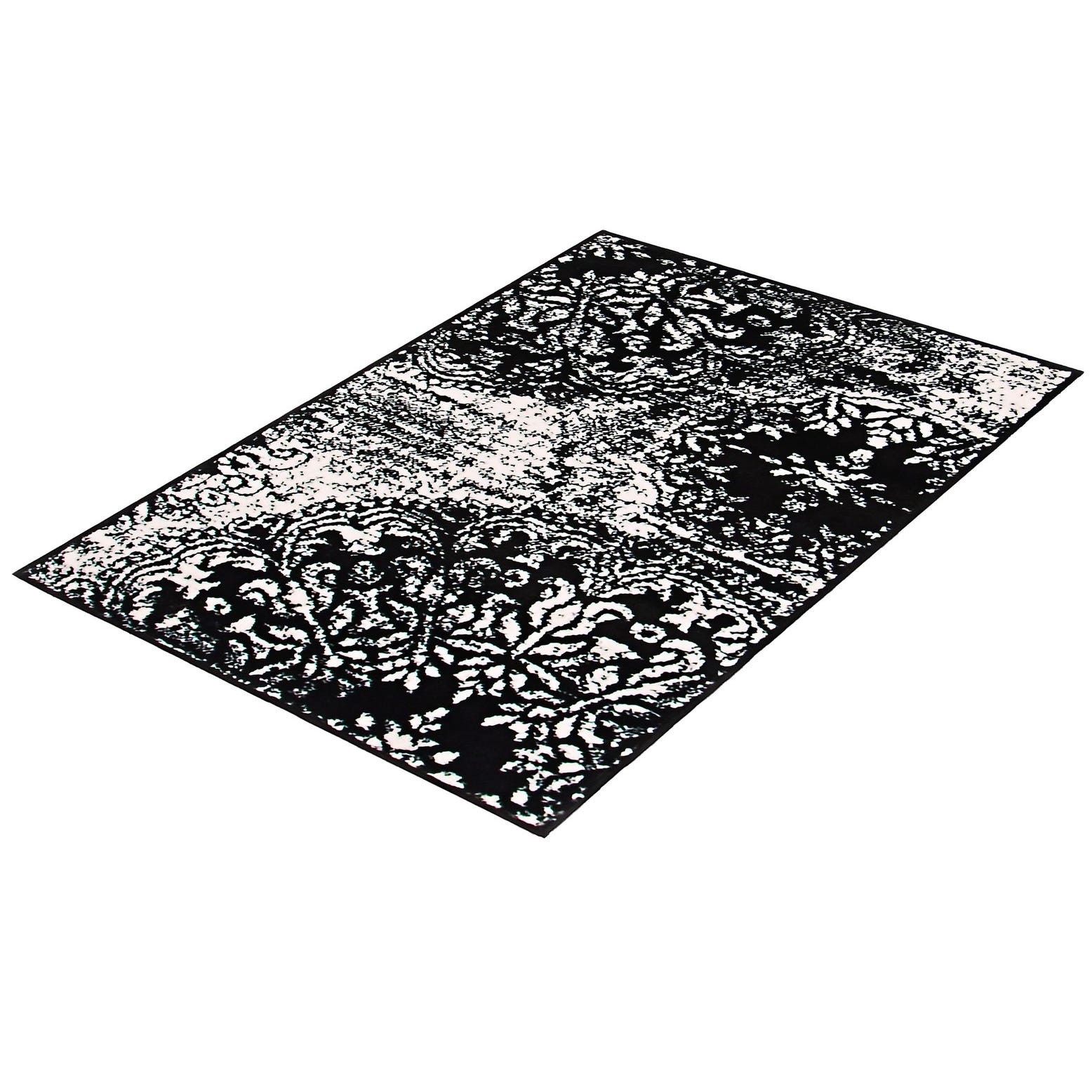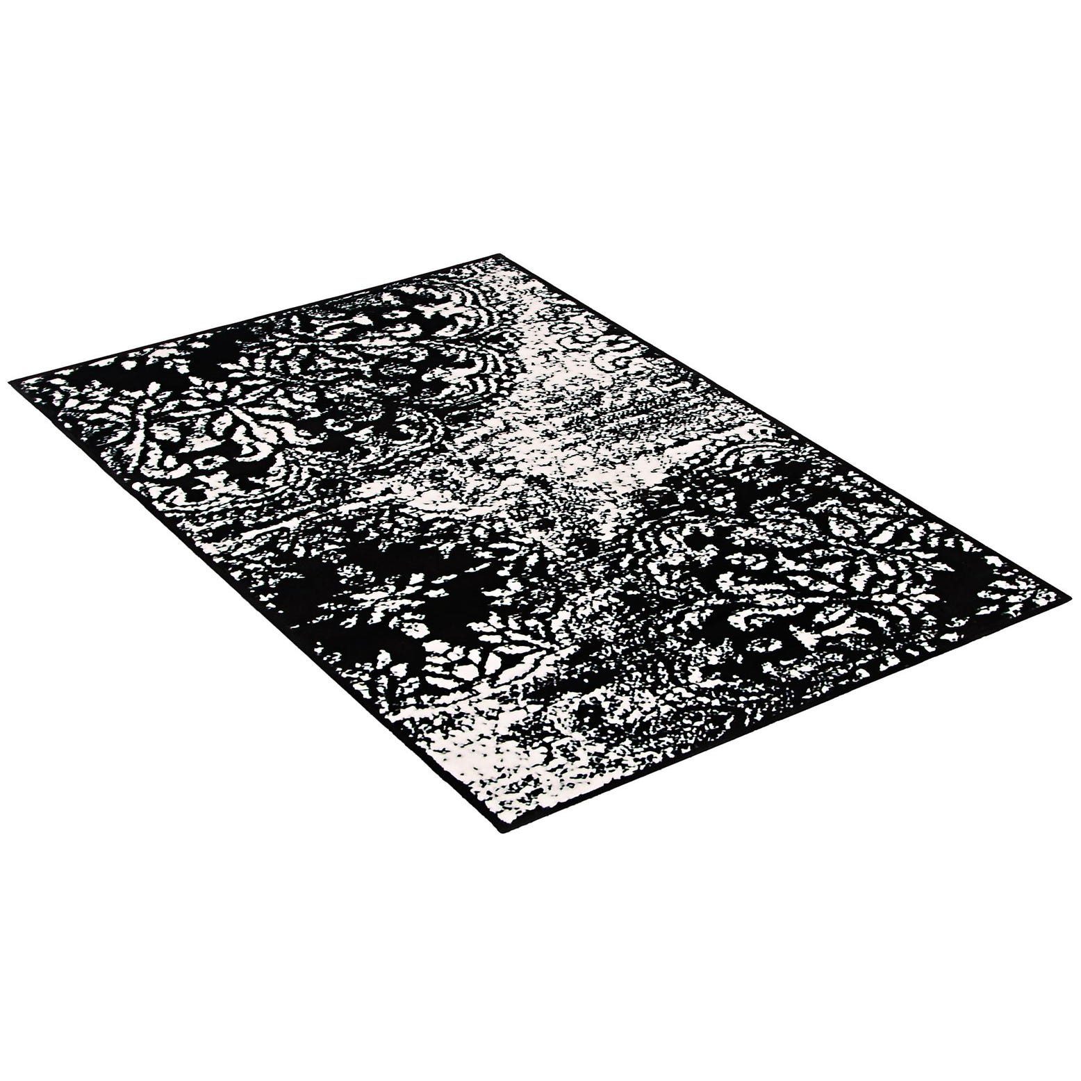 Primary color is Black. Colors in this rug include: Black, Ivory.