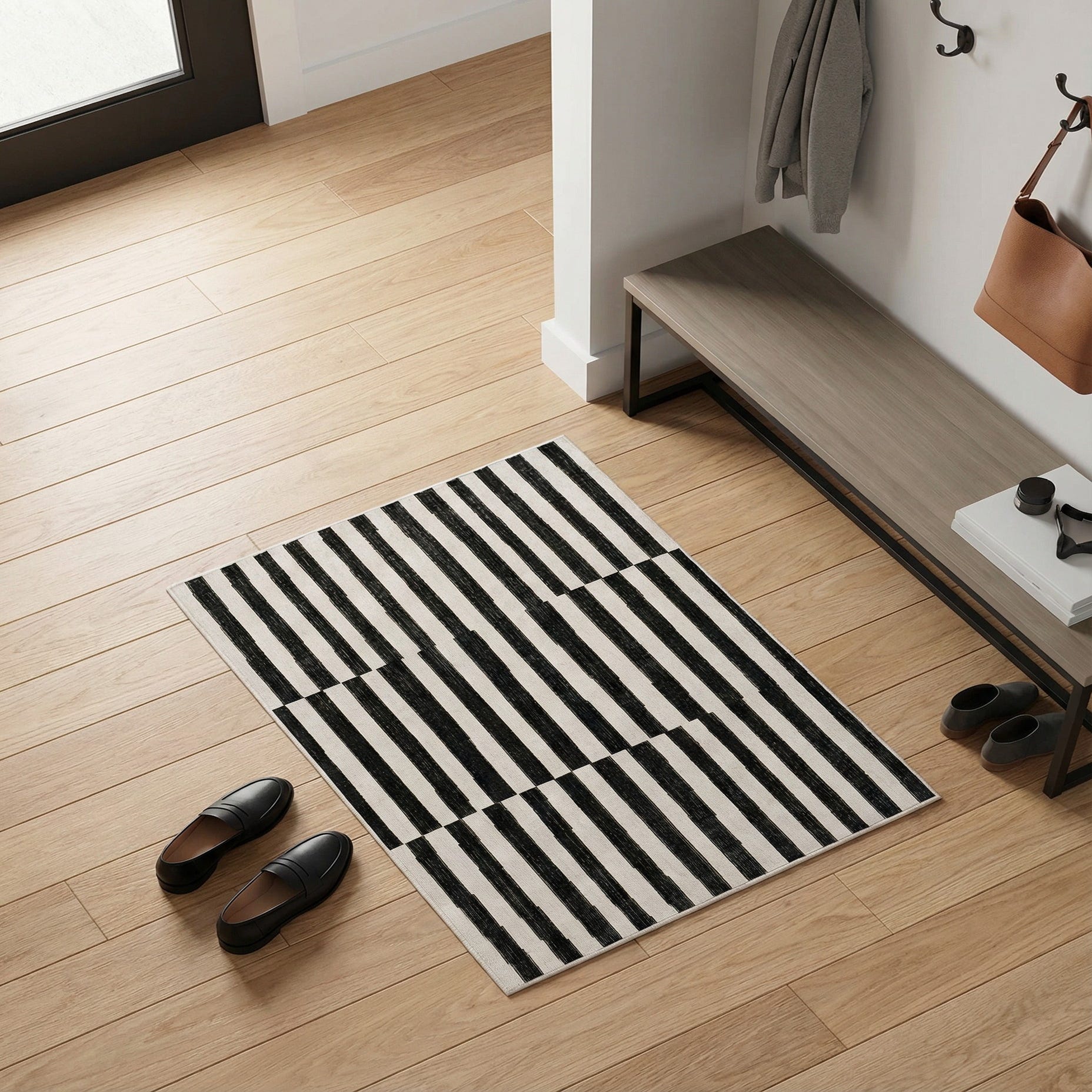 Primary color is Black. Colors in this rug include: Black, Ivory.