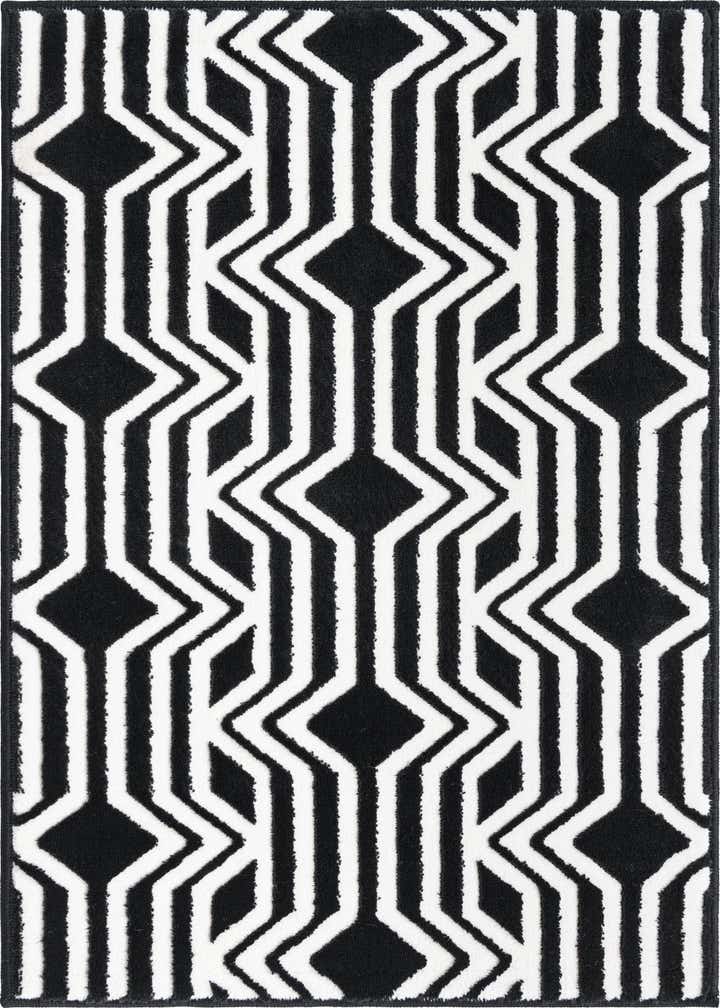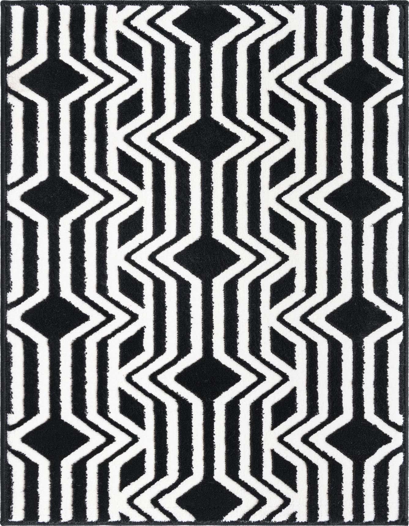 Primary color is Black. Colors in this rug include: Black, Ivory.