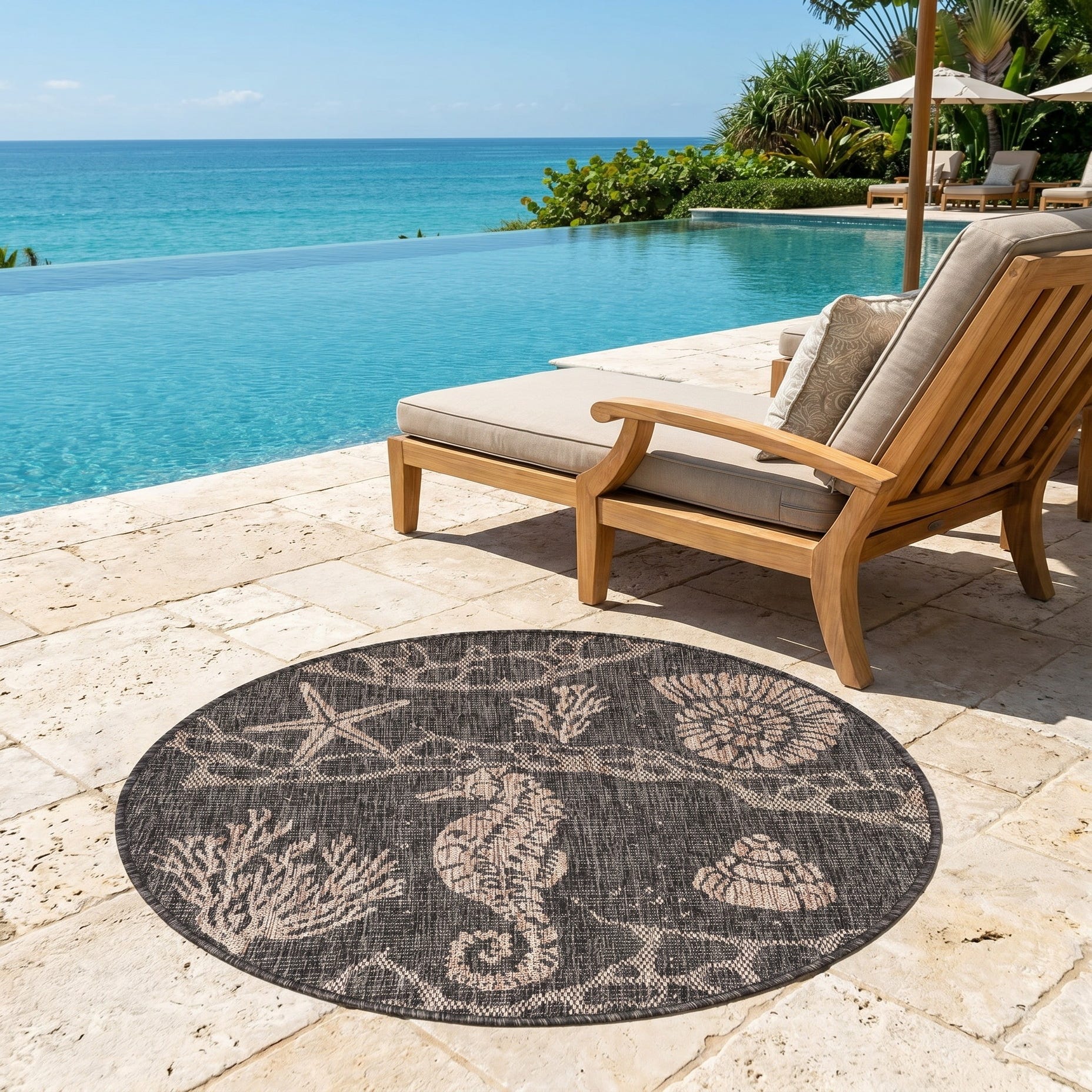 3' x 3' Easy-Clean Coastal Indoor / Outdoor Round Rug