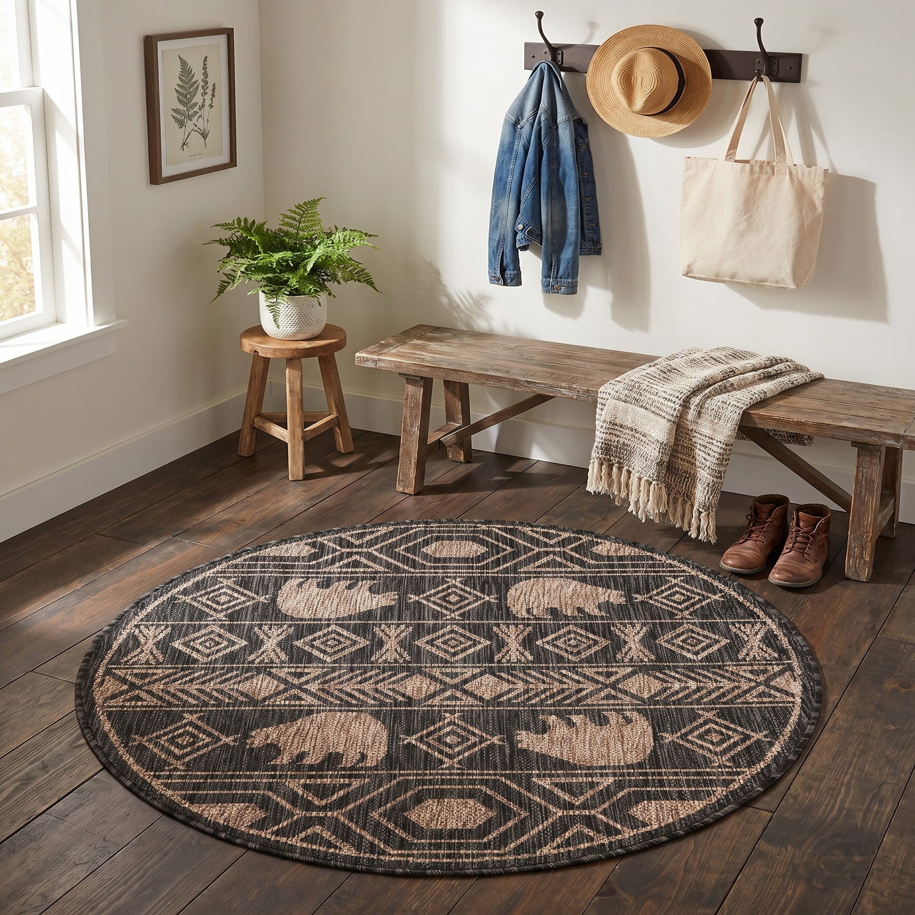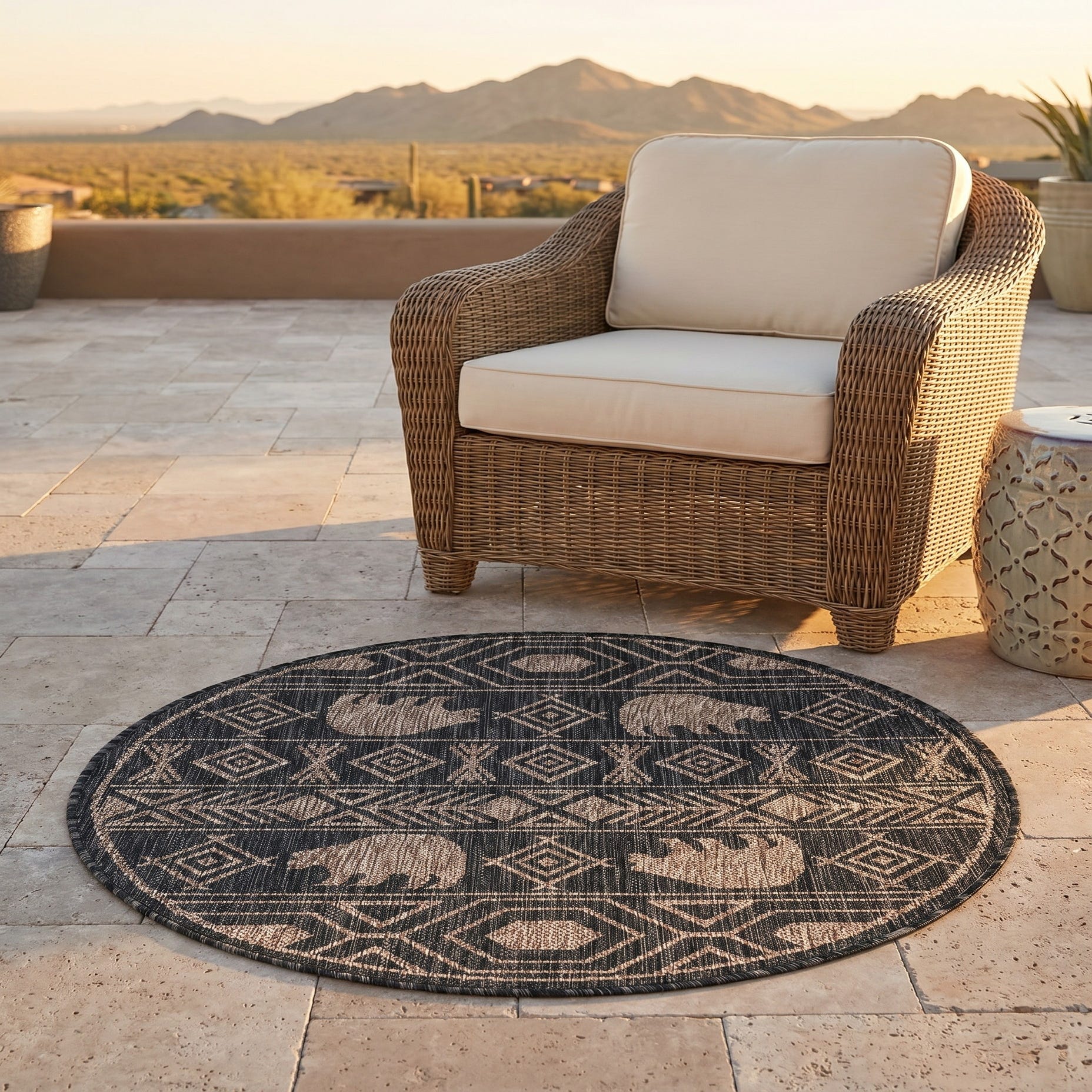 3' x 3' Easy-Clean Southwestern Indoor / Outdoor Round Rug