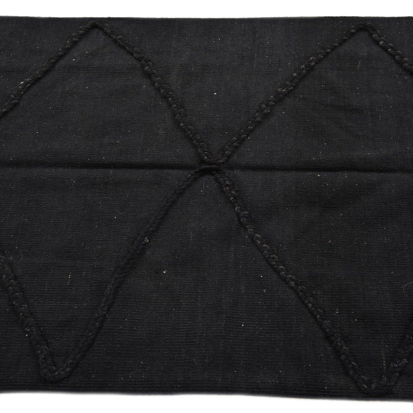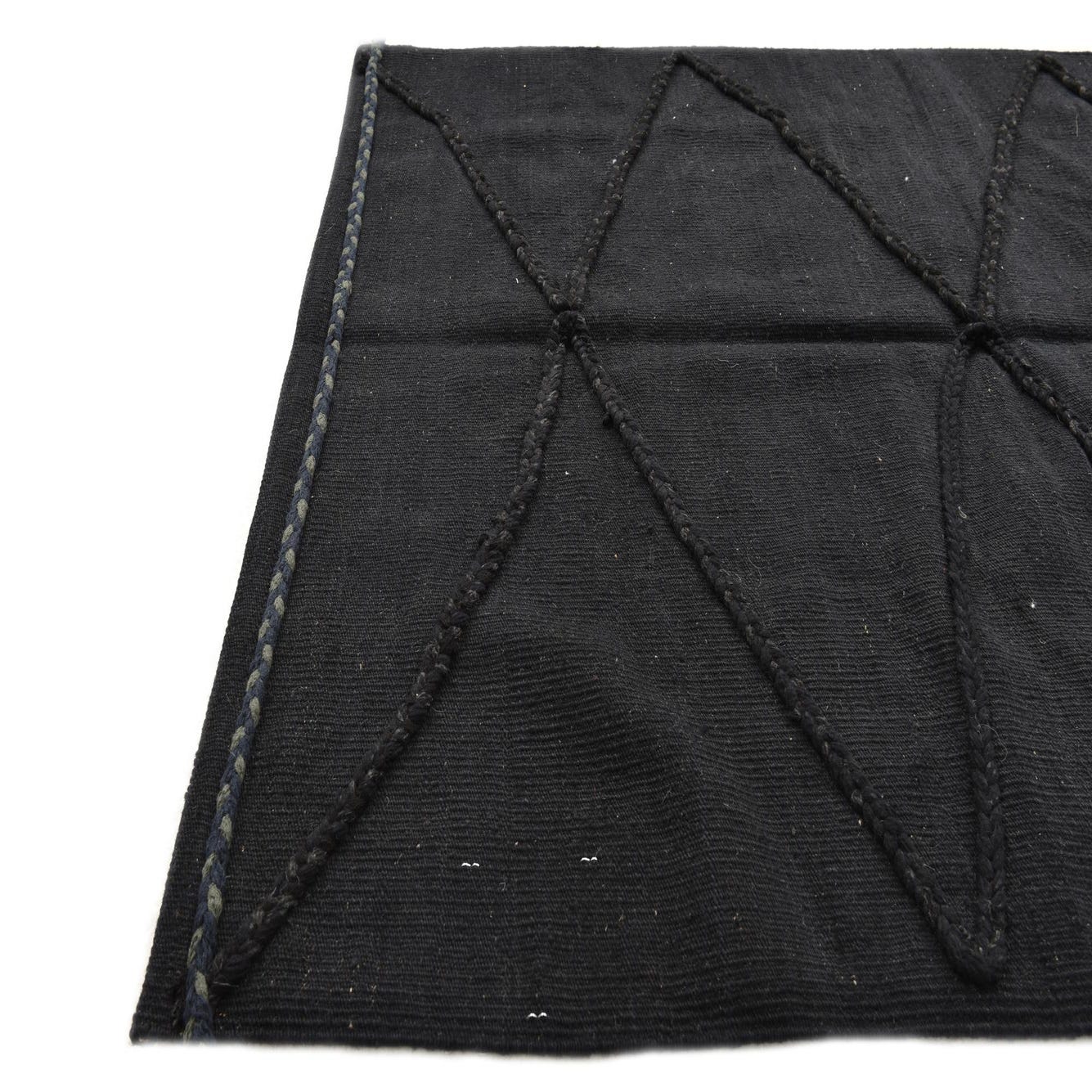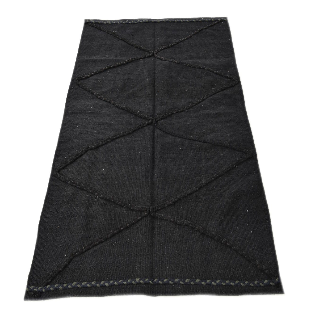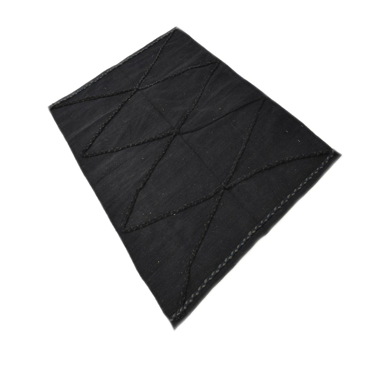 A 3x5 rectangular black wool shag rug featuring a modern tribal pattern of braided lines forming diamonds.
