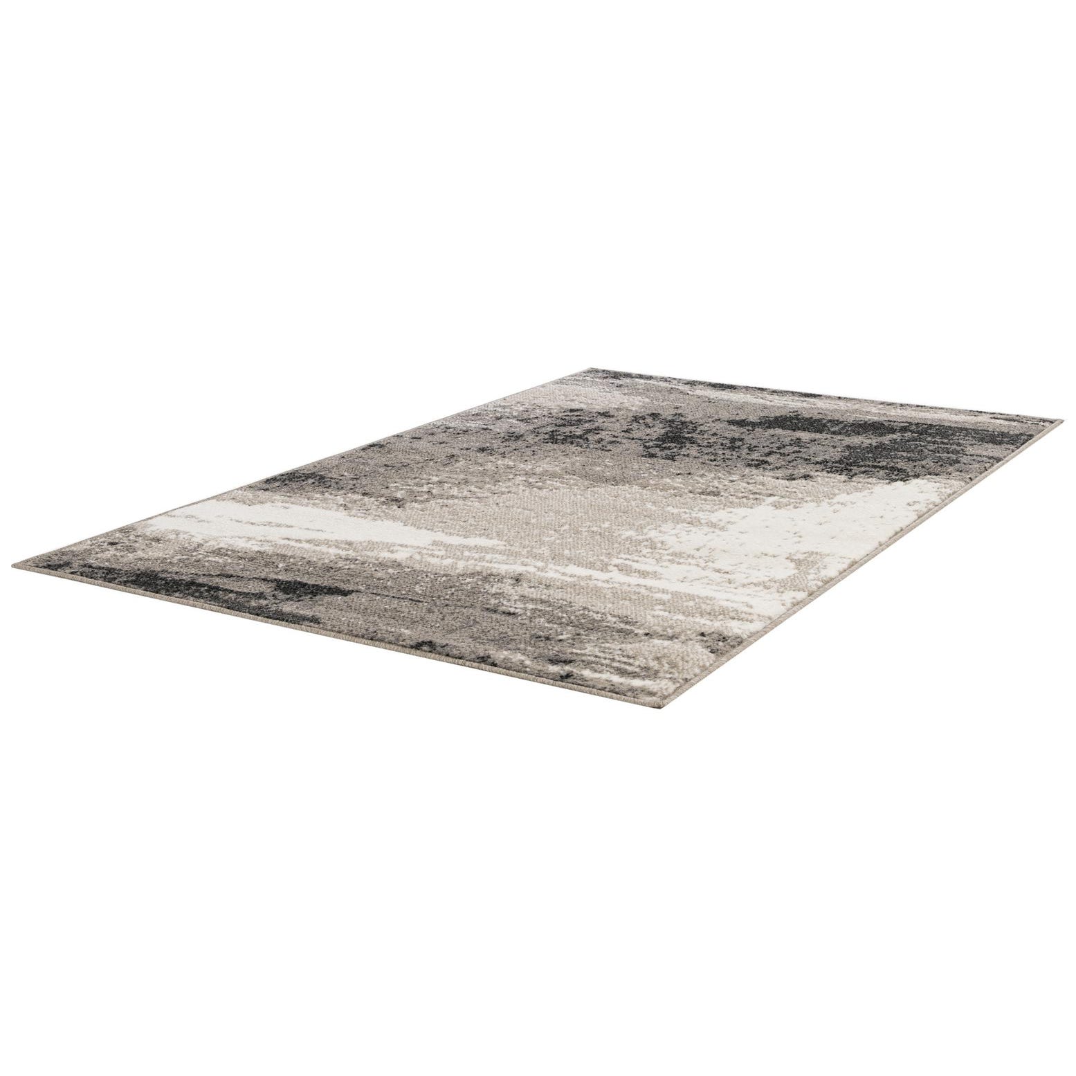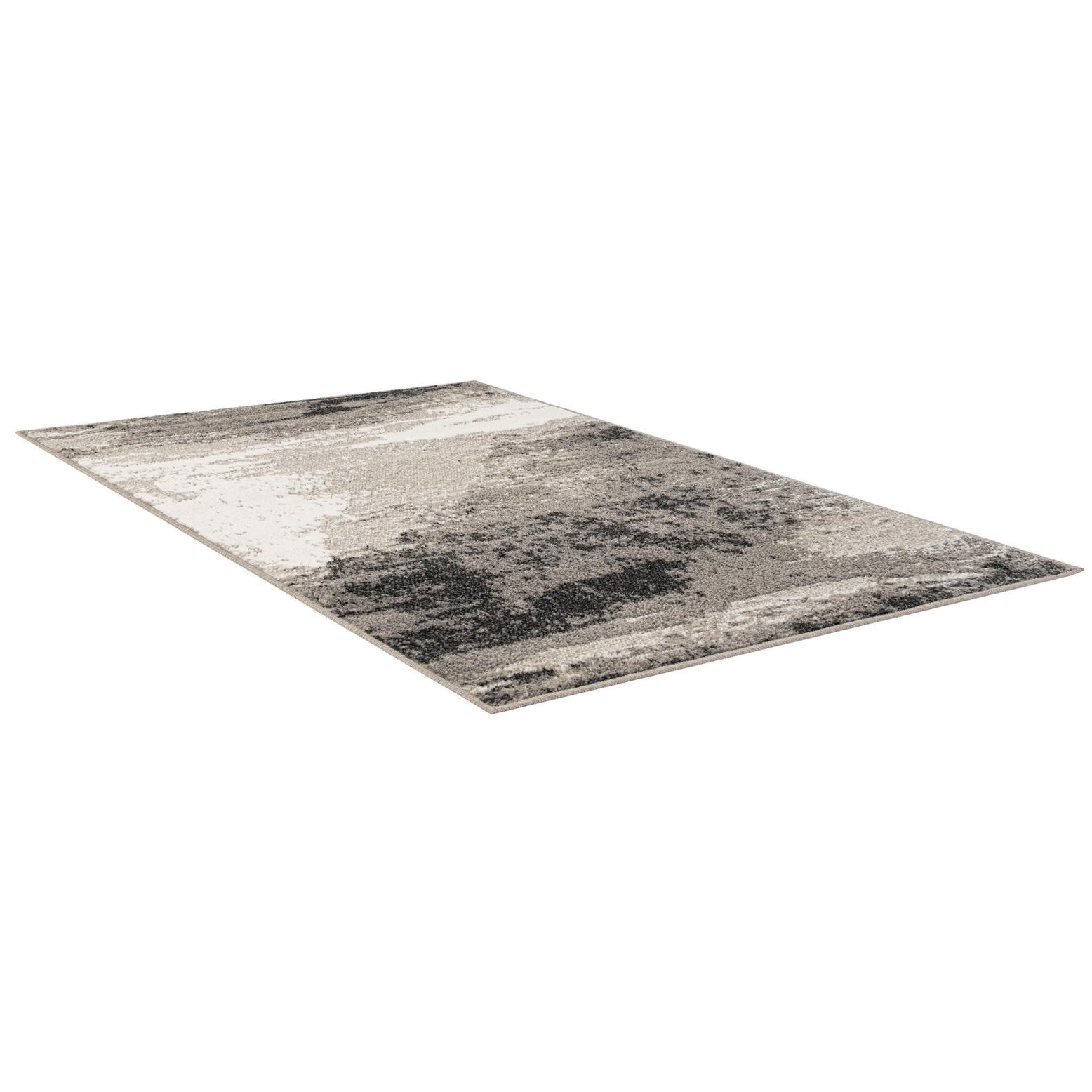A 3x5 rectangular Oslo collection rug with a modern abstract pattern in shades of black, grey, and white.