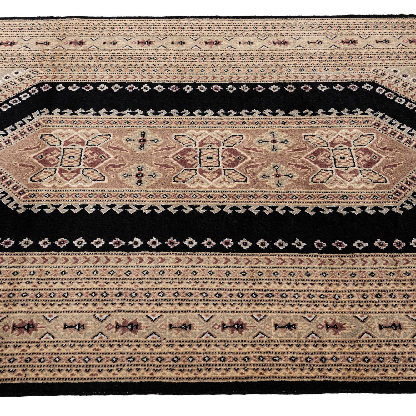 Primary color is Black. Colors in this rug include: Black, Brown, Cream, Light Brown, Gray.