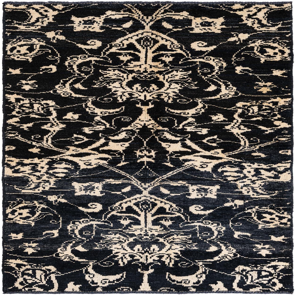 Primary color is Black. Colors in this rug include: Black, Ivory.
