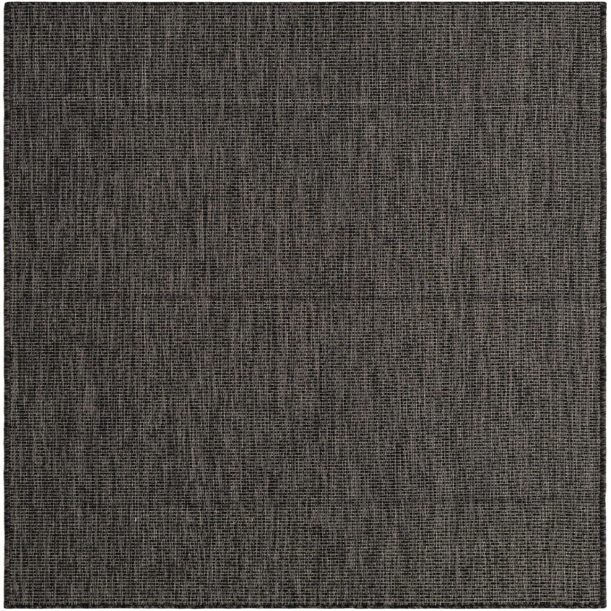A 4x6 rectangular black modern flatweave rug with a subtle textured pattern, suitable for indoor or outdoor use.