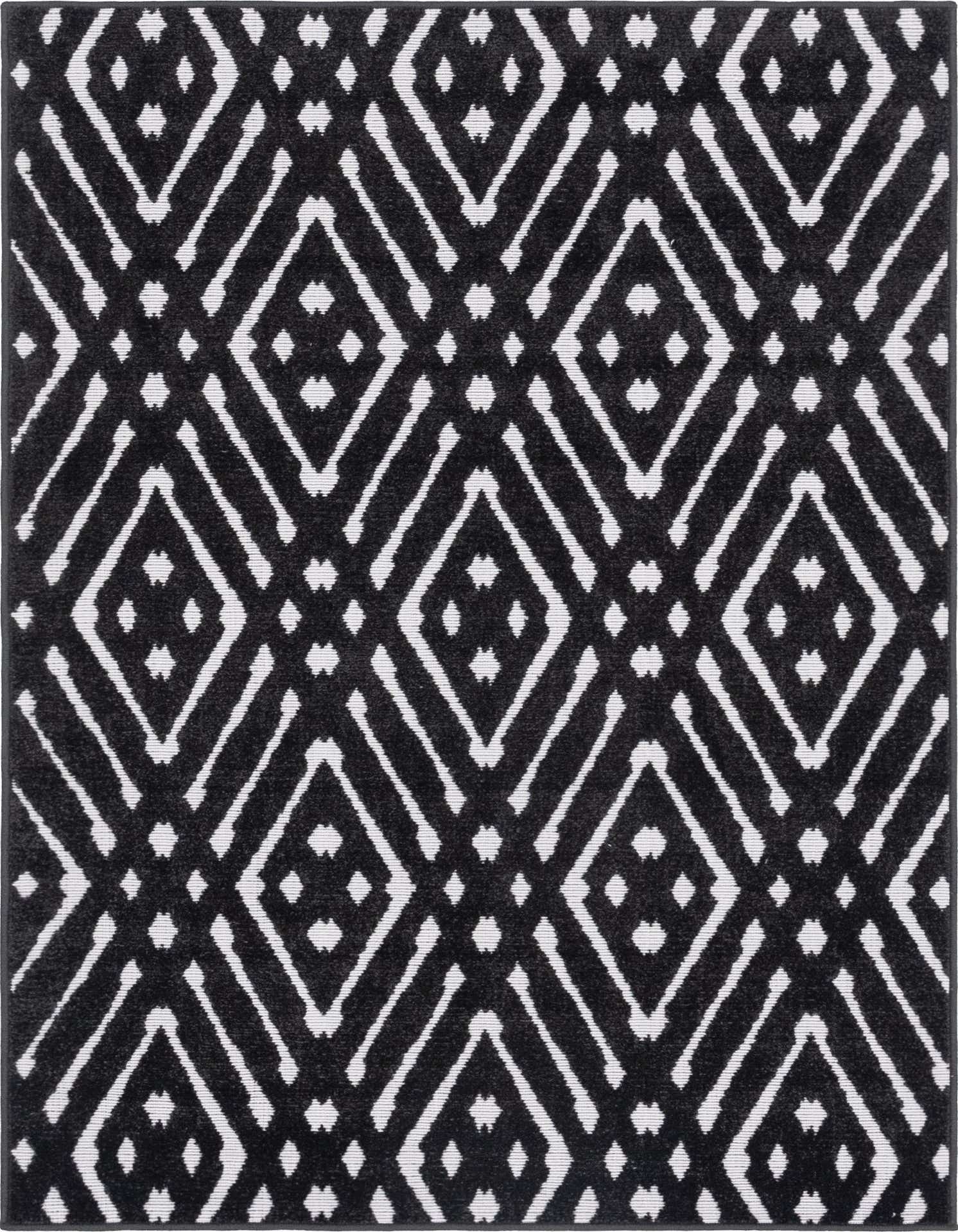 Primary color is Black. Colors in this rug include: Black, Ivory.