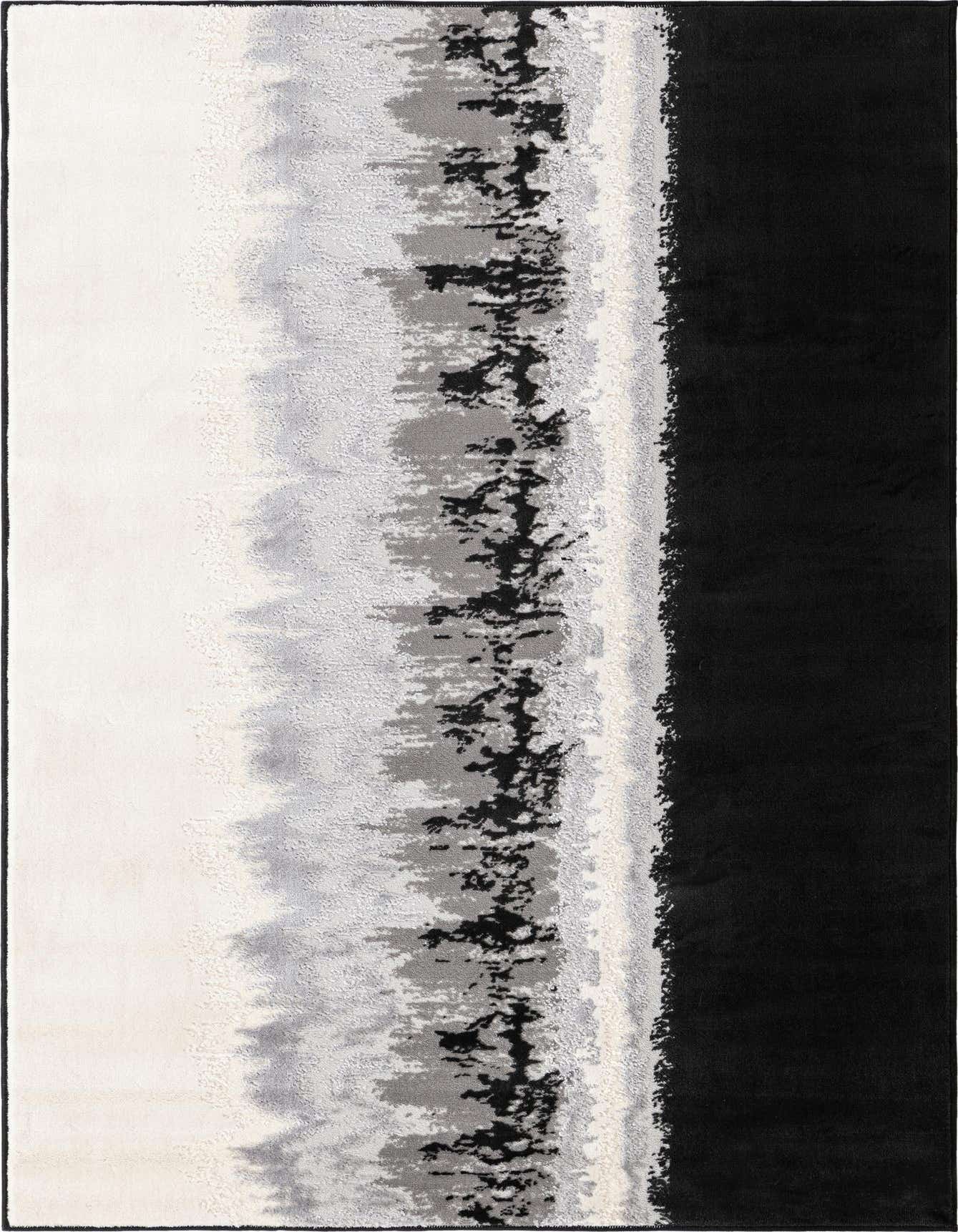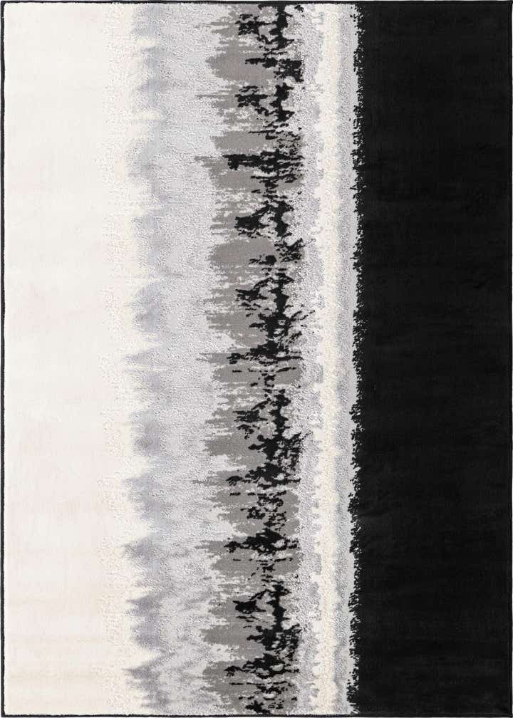 Primary color is Black. Colors in this rug include: Black, Gray, Ivory.