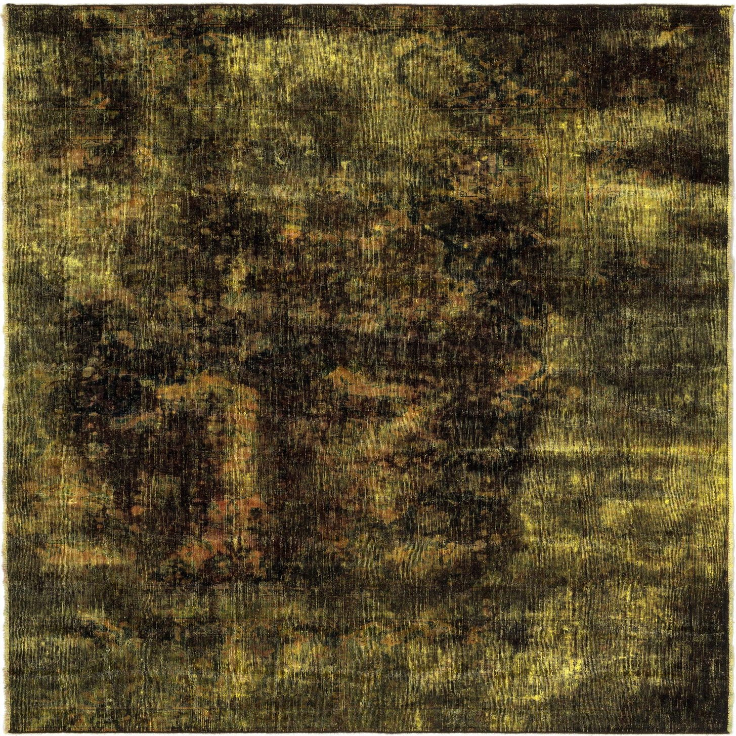 A 4x6 rectangular black Persian wool rug with subtle gold and brown distressed accents, ideal for an entryway or living room.