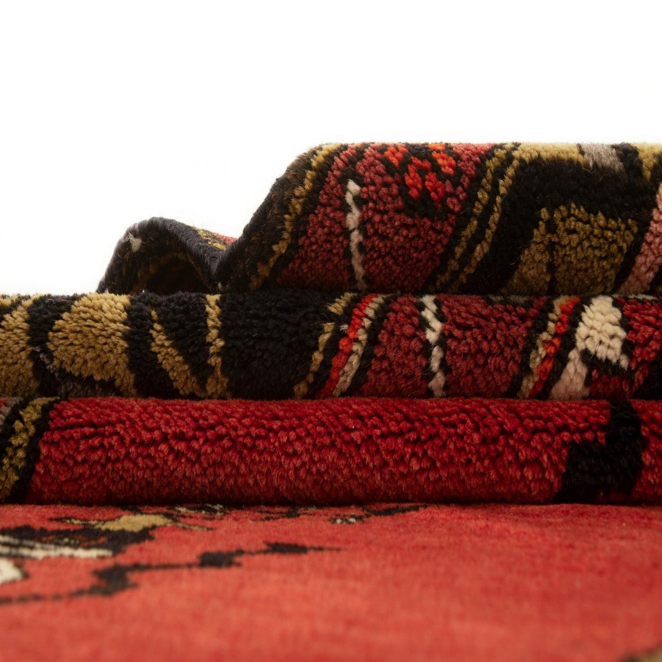 A 4x6 rectangular Rugs.com Yuruk rug featuring a bold red central panel with black and gold traditional patterns, suitable for an entryway or living room.