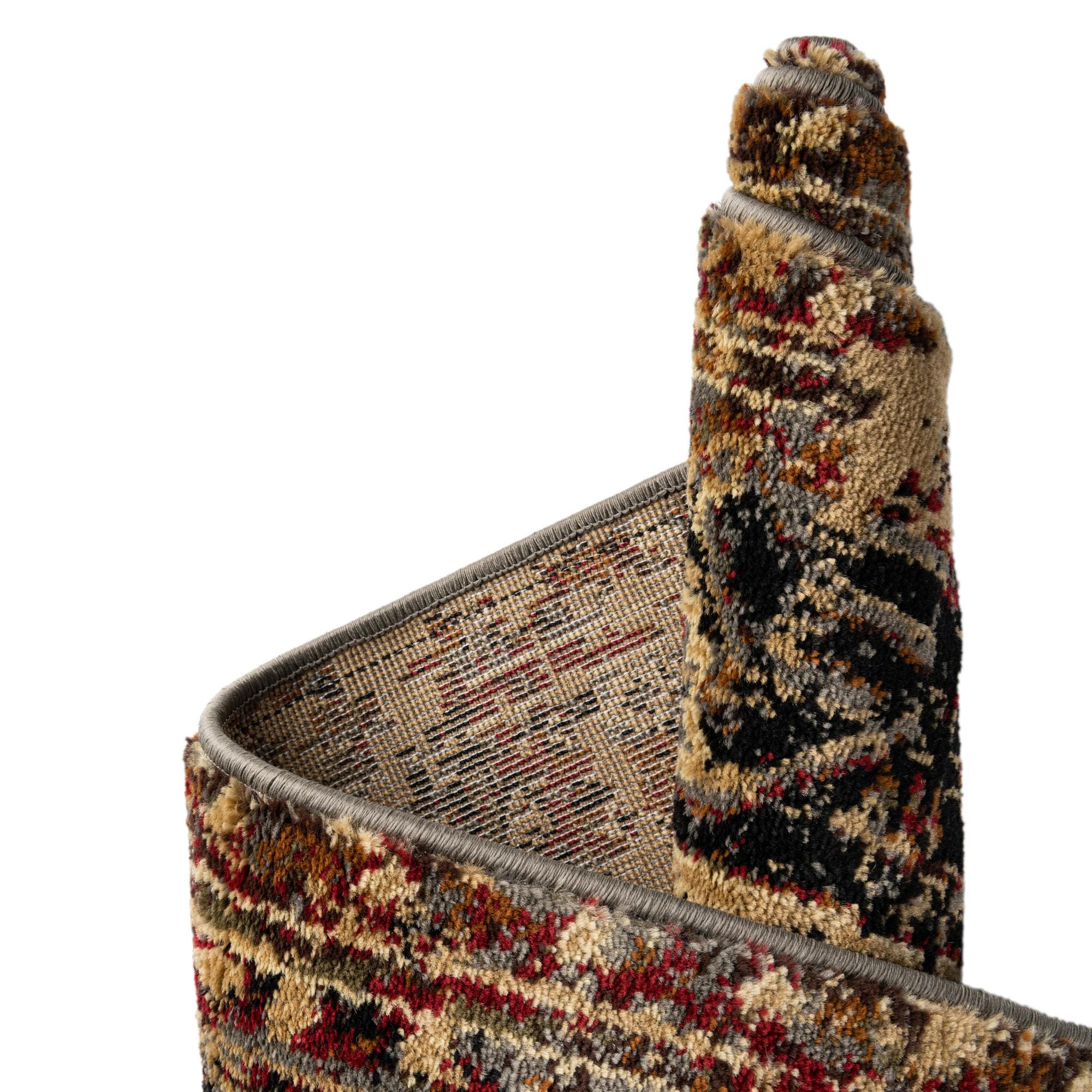 Primary color is Black. Colors in this rug include: Black, Beige, Brown, Gray, Tan, Red.