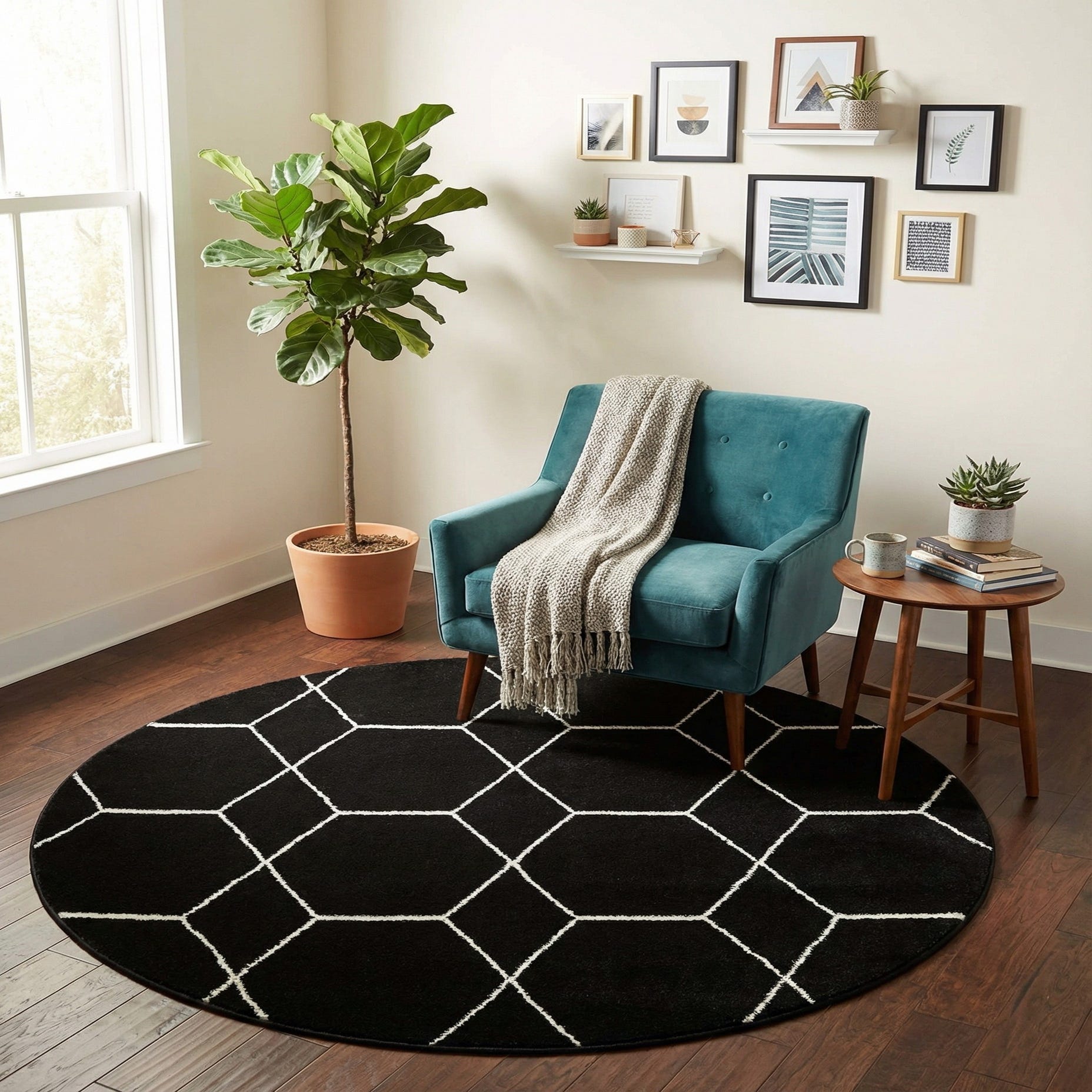 5' 3 x 5' 3 Lattice Frieze Round Rug