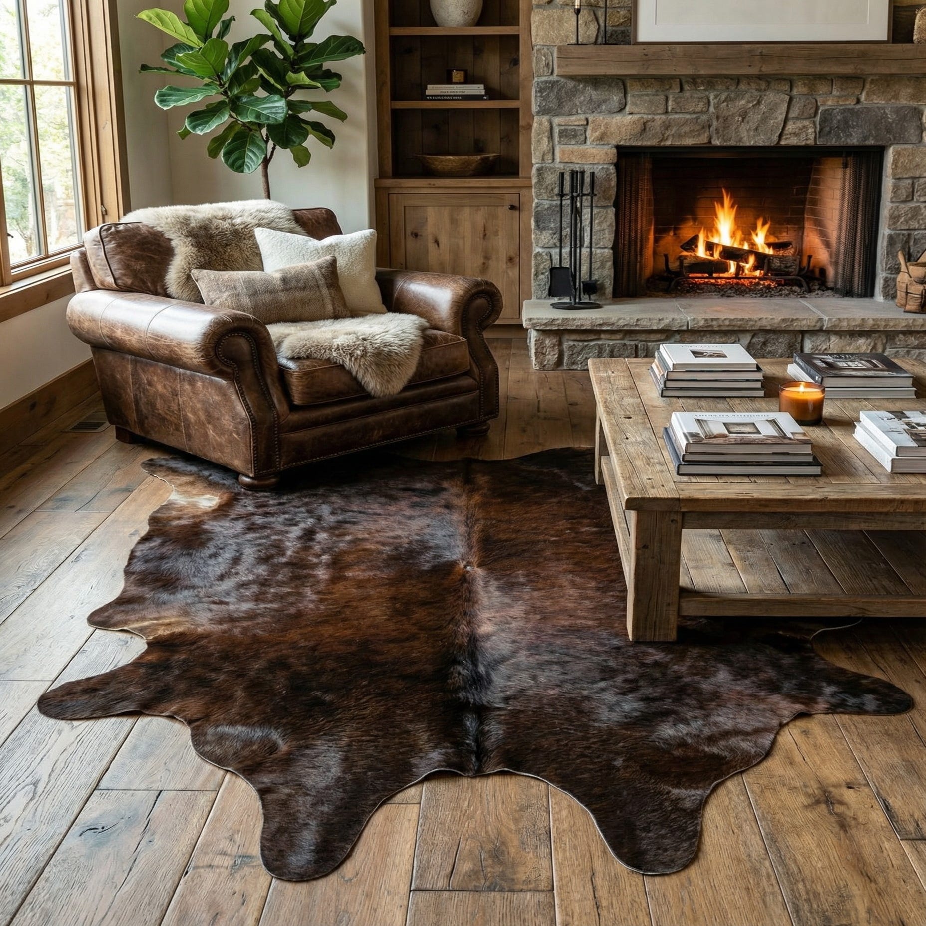 4' 10 x 5' 9 Cowhide Leather Rug