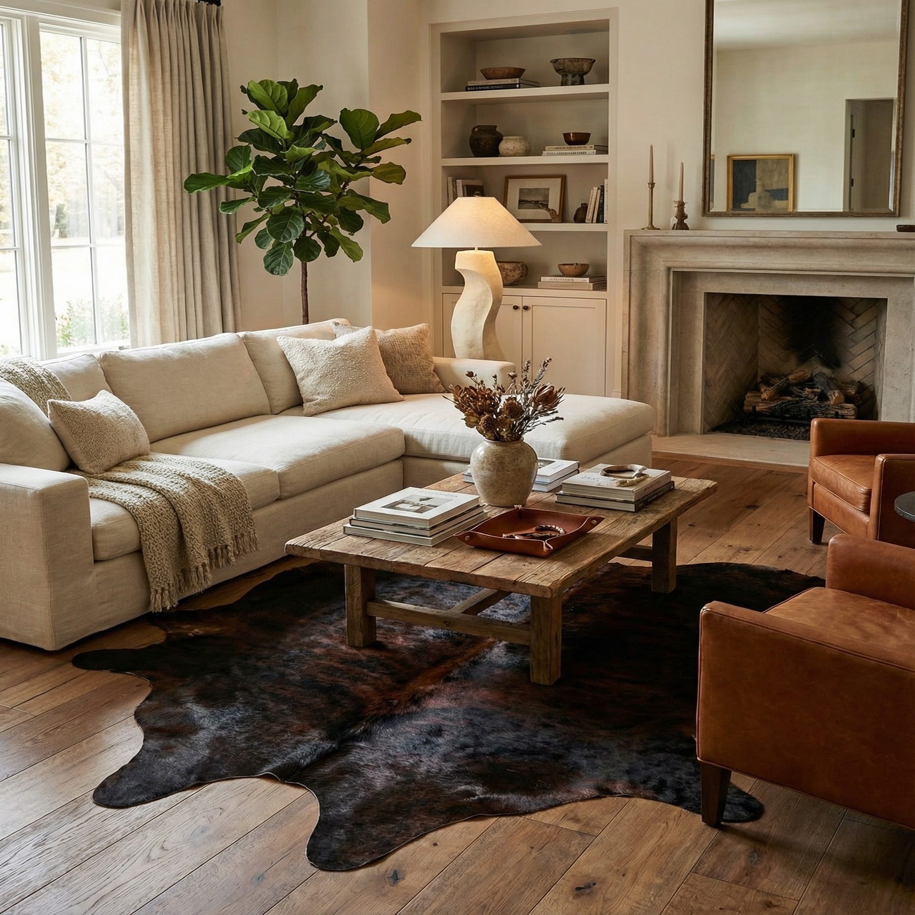 5' 6 x 6' 5 Cowhide Leather Rug