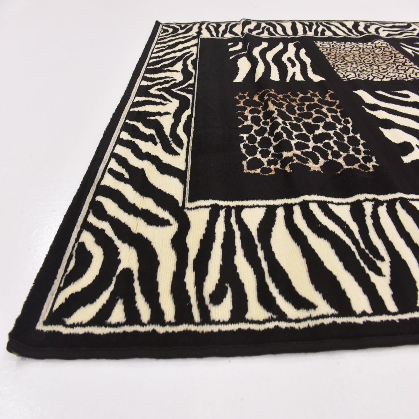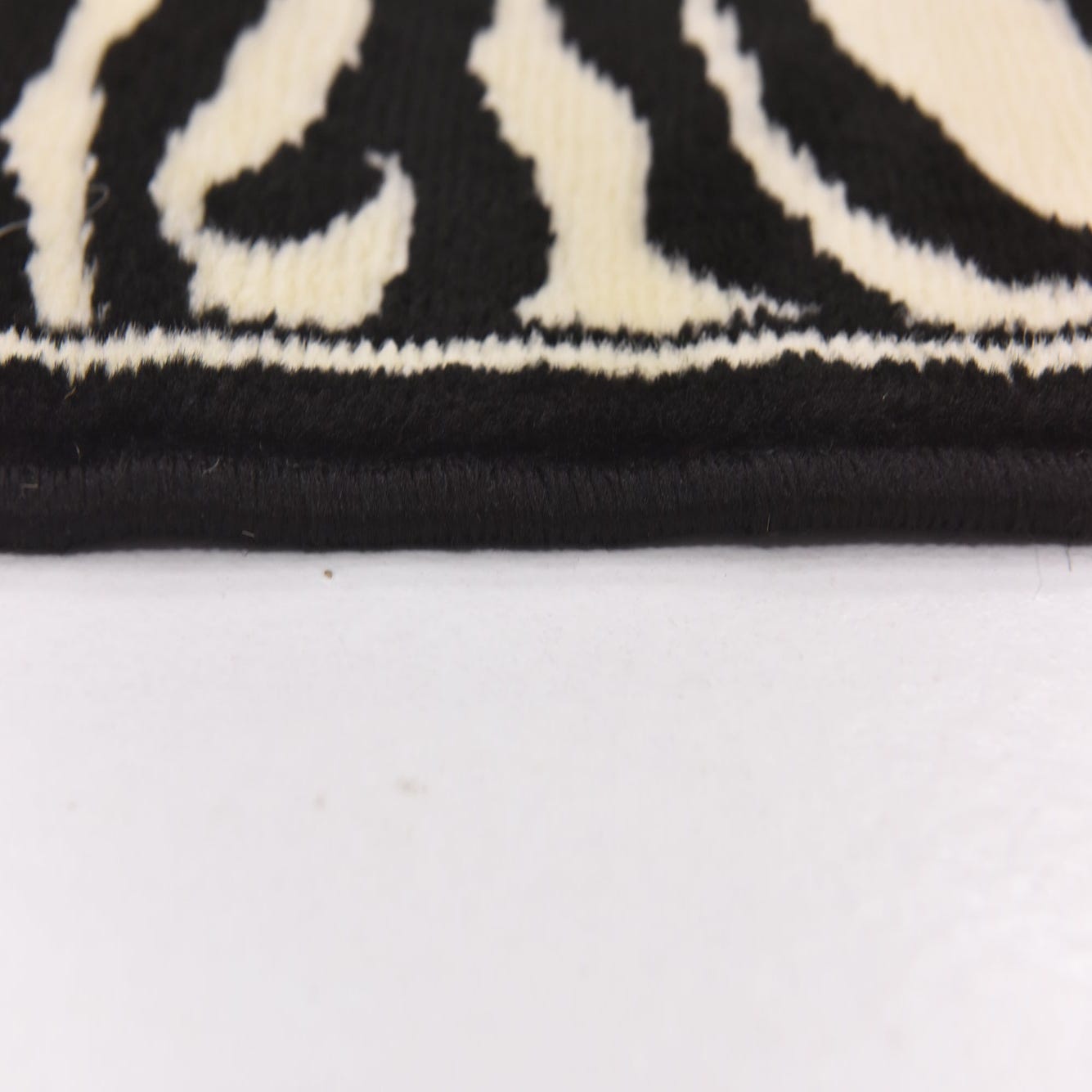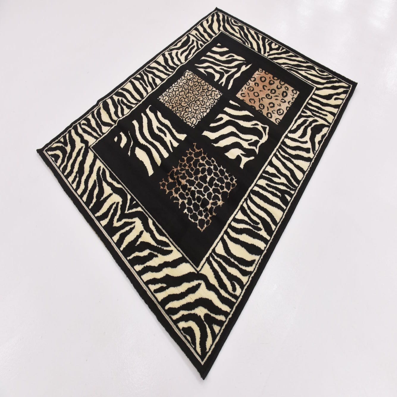 Primary color is Black. Colors in this rug include: Black, Ivory, Light Brown.