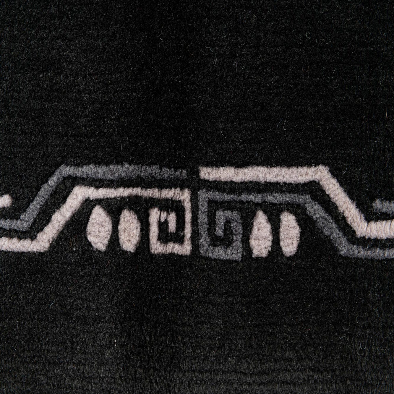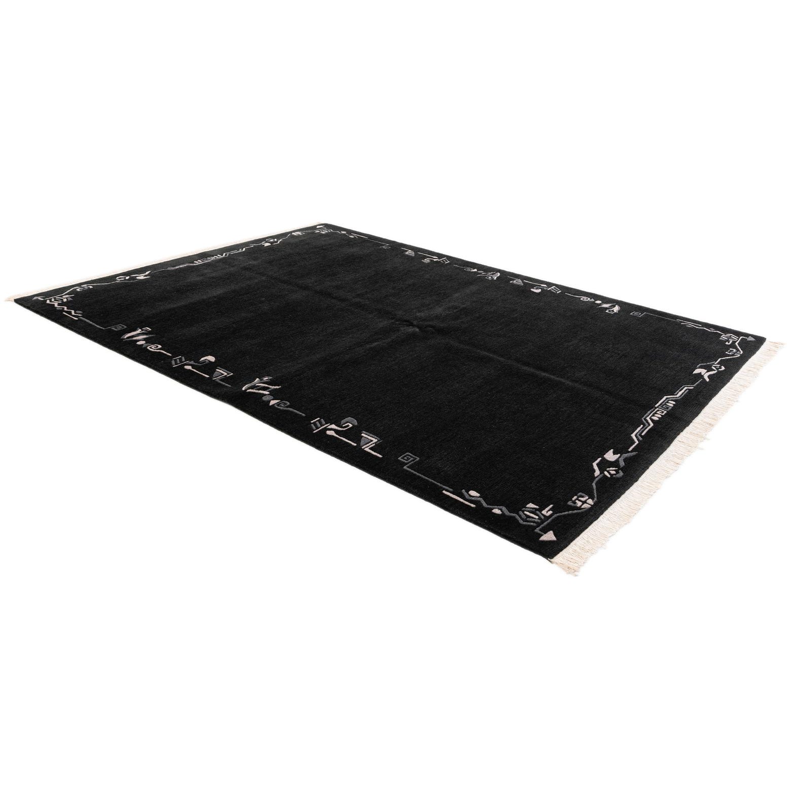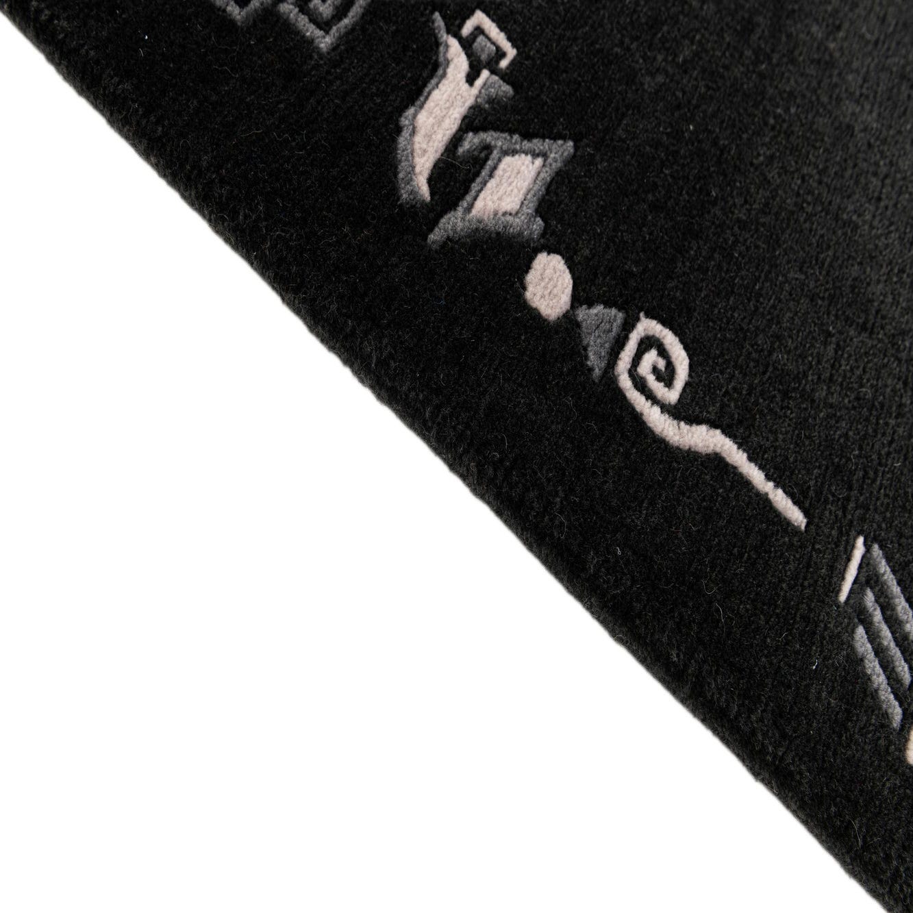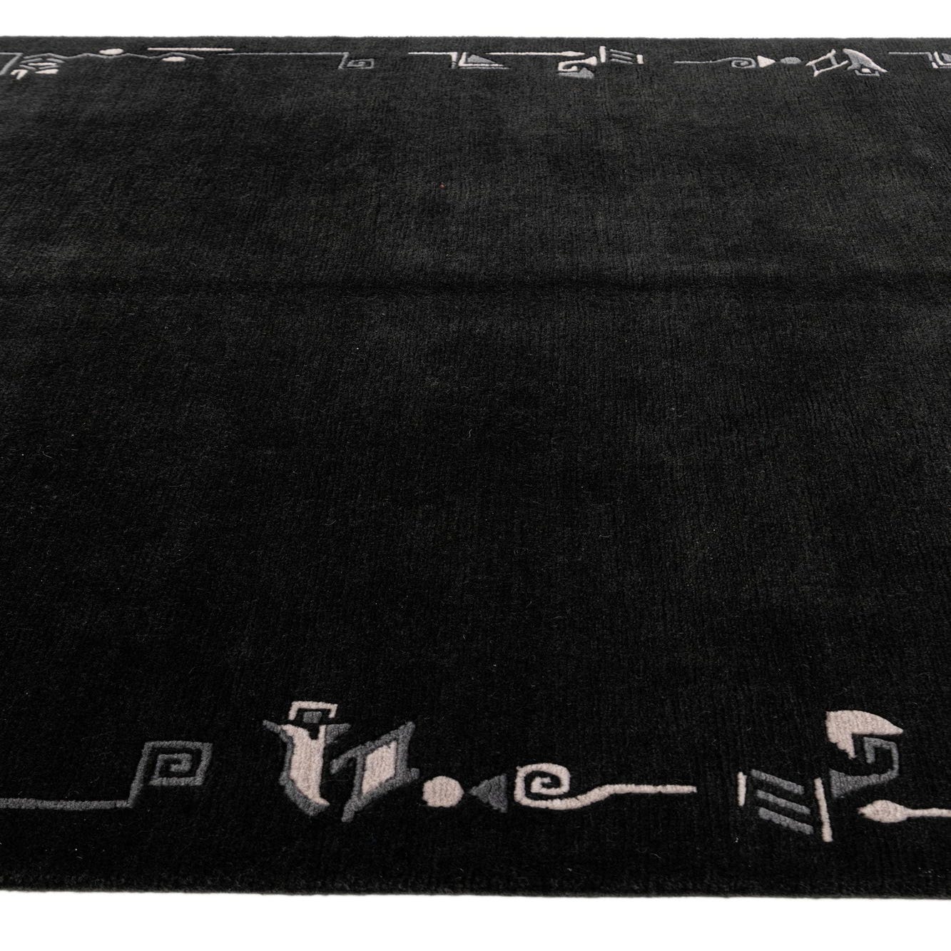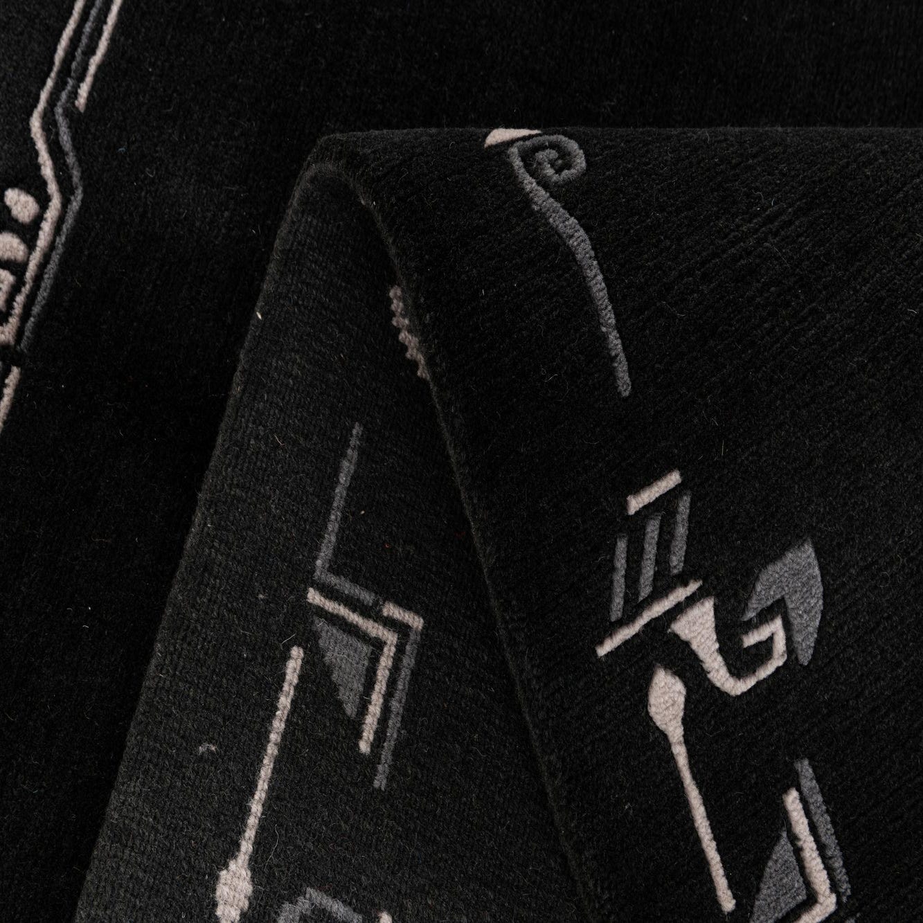 Primary color is Black. Colors in this rug include: Black, Ivory, Gray.