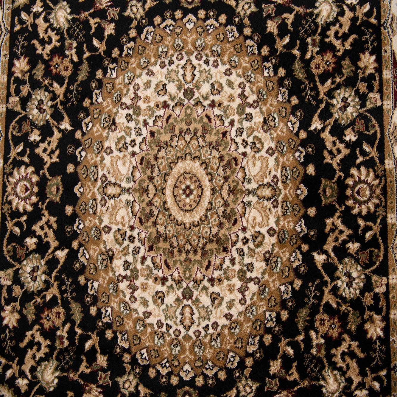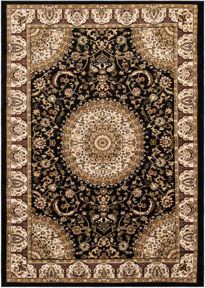 Primary color is Black. Colors in this rug include: Black, Ivory, Beige, Red, Olive.